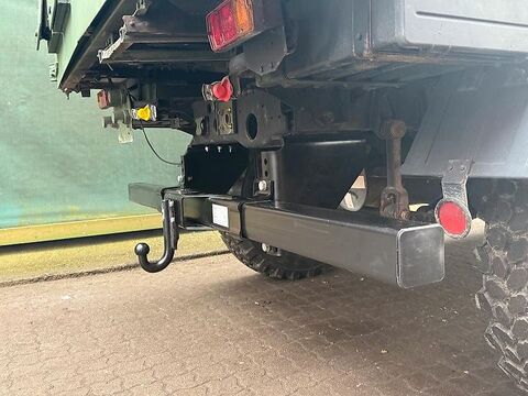 Anhängevorrichtung Unterfahrschutz für Unimog U1300L 435, U1550L 437, U4000, U5000 Dieser hochwertige Unterfahrschutz mit integrierter Anhängevorrichtung wurde speziell für die Modelle Unimog U1300L 435, U1550L 437, U4000 und U5000 entwickelt. Er bietet optimalen Schutz für das Fahrzeugheck und ermöglicht gleichzeitig das sichere Ziehen von Anhängern. Dank seiner durchdachten Bauweise beeinflusst er den Böschungswinkel des Fahrzeugs nur minimal, sodass die Geländetauglichkeit erhalten bleibt. Technische Daten: • EG-Genehmigungszeichen: e13 00-0345 gemäß Richtlinie 94/20/EG • D-Wert: 23,5 kN • Maximale Anhängelast: 3.500 kg • Geprüfte Stützlast: 150 kg • Material: Hochwertiger, belastbarer Stahl für maximale Stabilität • Gewicht: ca. 60 kg (inkl. aller Montageteile) • Montage: Direkte Befestigung am Fahrzeugrahmen unter der Hecktraverse. Besondere Merkmale: Robuste Konstruktion: Hohe Stabilität, hochwertige Lackierung und Langlebigkeit für den harten Geländeeinsatz Geringer Einfluss auf den Böschungswinkel: Ideal für Offroad-Nutzung Flexible Kupplungsoptionen: Kompatibel mit Kupplungskugel oder selbsttätiger Bolzenkupplung Einfache Montage: Inklusive detaillierter Anleitung für den fachgerechten Einbau Zugelassen nach EG-Richtlinie: Offizielle Genehmigung für den Straßenverkehr Der Anhängebock mit Kugelkopplung ist auf den Produktbildern an einem Unimog U1300L montiert und die Höhe der Kugel beträgt 50cm vom Boden (befindet sich im normalen Bereich). Dieser Anhängebock ist ein sicherheitsrelevantes Bauteil und sollte nur von Fachpersonal montiert werden. Alle technischen Werte entsprechen den gesetzlichen Vorschriften und wurden geprüft. Lieferumfang: • Anhängebock mit Querrohr • Montagematerial (Schrauben, Muttern, Schellen, Steckdosenhalter) • Kugelkupplung höhenverstellbar mit EG-Genehmigungszeichen • Detaillierte Montageanleitung Perfekt für den Unimog-Fahrer, der eine zuverlässige Anhängevorrichtung benötigt, ohne die Geländegängigkeit seines Fahrzeugs zu beeinträchtigen! Der angegeben Preis ist inkl. 19% Mwst. Versand auf Palette möglich.