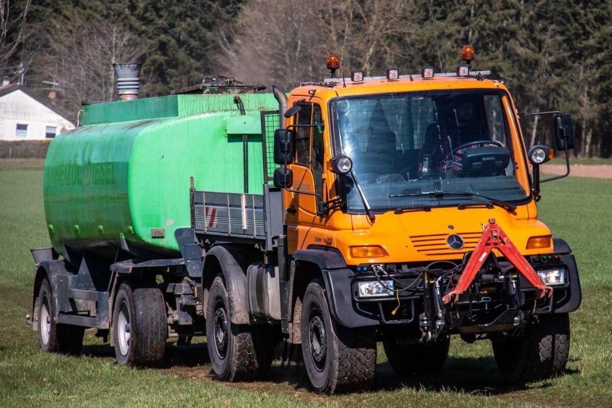 Mercedes U500 (Int. Nr. 15545) Bj 2005 9980 Betriebsstunden 258.000km TÜV neu Schalter / Automatik (V8 / R4) Kabine Heizung Klimaanlage Allradantrieb Kurzer Radstand 2-Leitungsbremse Lenksystem Hydraulisch Ahk 40/50 Bolzen 90 km/h Differenzialsperre an der Vorderachse Anh. Bremsanlage Zweileitung Kühlerschutzgitter hinten Kraftstoffbehälter vergrößert Auspuffrohr nach oben Frontanbauplatte Größe 3 Dauerstromsteckdose 12V / 15A mit C3-Signal ABS - Anhängersteckdose 24V, 7-polig / 5-PinSteckdose vorn 24V, 7-polig Gerätesteckdose 24V (40A) mit C-3 Signal Radio mit Kassettengerät Fahrerhaus Komfortlagerung vornNachschaltgetriebe mit ArbeitsgruppeAutomatic Shift (EAS) Zweikreis-Hydraulikanlage mit EHSHydraulikanlage 4-zellig Hydraulikanlage mit 240 bar SystemdruckKippzylinder Steckeranschluss hinten, 4-Fach Zelle 2+3Druckleitung hinten, 2. HydraulikkreisSeparate Rücklaufleitung hintenSchneepflugentlastungHydr. Steckeranschluss vorne 4-fach, Zelle 1 und 2Hydr. Steckeranschluss vorne 4-fach, Zelle 3 und 4Zusätzliche Druckleitung vorn Separate Rücklaufleitung vorn Carbonsäure-Ester für Hydraulikanlage Tachograf EC, 2 Fahrer mit ZusatzschreiberWegdrehzahlausgleich nach MessergebnisWarnleuchte für TeleskopzylinderBeleuchtung für ArbeitsgeräteZusatzscheinwerfer für FrontanbaugeräteRundumleuchte, Verkabelung und StativMotorleistung erhöht Lichtmaschine verstärkt bei 24 ColtMotor-Zapfwellenantrieb inkl. FrontzapfwelleZapfwellendrehzahlbegrenzung vorn auf 540 1/MinPritsche 2700 x 2240 x 400Schlussquerträger für tiefergesetzte Anhängekupplung Steilschulterfelgen 14.00x22.5 Luxus Fahrer Komfortschwingsitz, luftgefedert mit Sitzheizung und Armlehnen Windschutzscheibe heizbar Fensterheber elektrisch (links und rechts)Weitwinkelspiegel Rampenspiegel STVZO-Code für Zulassung als Zugmaschine / LKWWarnstreifen Rot / Weiß fluoreszierend und reflektierend Warnstreifen an Stoßfänger vorn und FronthaubeWarnstreifen an Bordwand hinten und RückwandKipphydraulik Fahrerhaus Betätigung Differentialsperre Frontanbauplatte Hilfsrahmen - Nieder Kotflügel, breite 2390mm Kraftstofftank - 250L Differentialsperre Scheibenräder 22,5 x 14,00 Hydraulisches Wegeventil - Zweikreis Verbindung Hydraulikanschlüsse VierzelligHydraulischer Steckanschluss vorneHydraulischer Steckanschluss hintenSeparate Rücklaufleitung Kipphydraulik Vierstufig Druckerhöhung 240 Bar (2. Kreis)Anhängersteckdose Tachograf Warnleuchte für Kipperbetätigung Elektrische Betätigung Zapfwellengetriebe vornBetätigung Arbeitsgruppe Kotflügel vorn - Fahrzeugbreite über Kitflügel 2400mm / Räder 31x24 / 22.5 x 14.00Zusatzscheinwerfer Notgeräte mit Halterung Motorkühlung Getriebekühlerleitung Hydr. Kupplung mit Druckverstärker Reifen hinten: 445/65 R22,5 (35%) Reifen vorne: 445/65 R22,5 (40%)