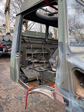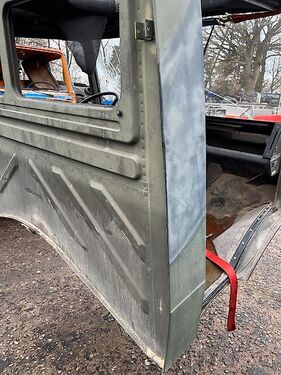 Zum Verlauf steht eine Unimog Kabine mit nahezu keinem Rost allerdings mit Dellen, da die Kabine beschossen wurde.