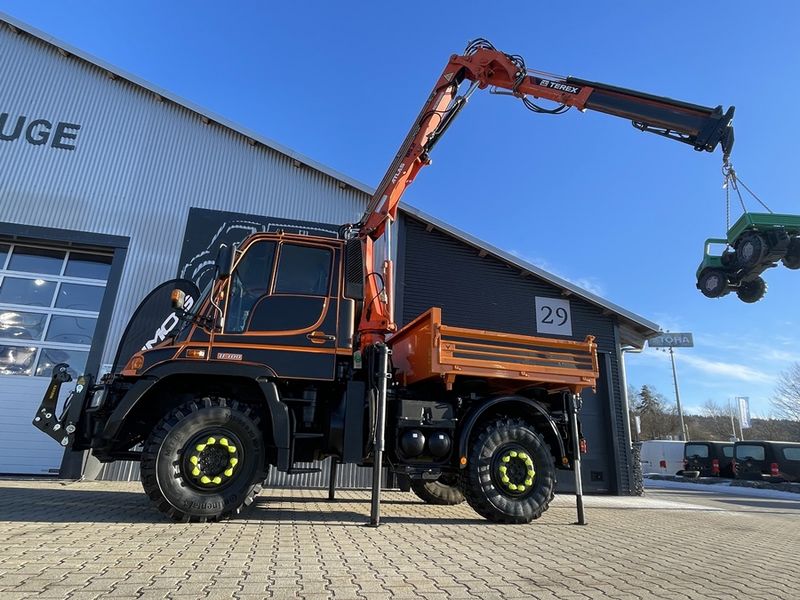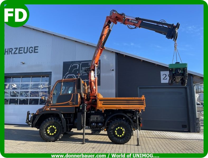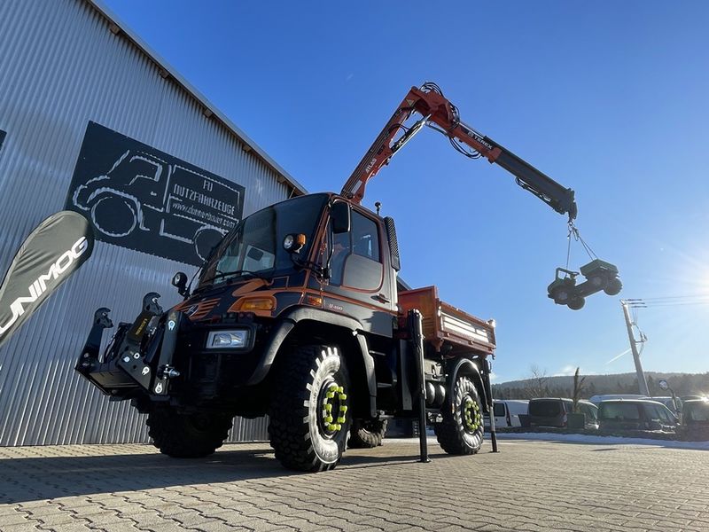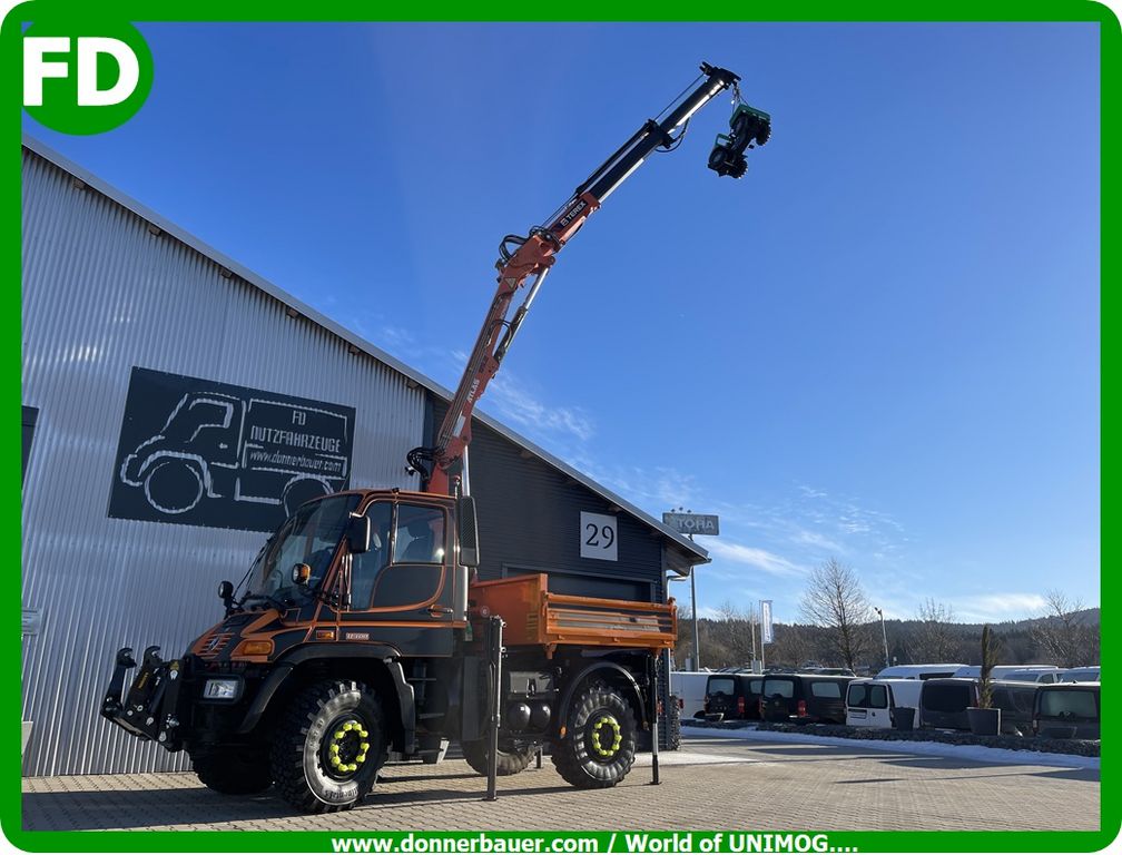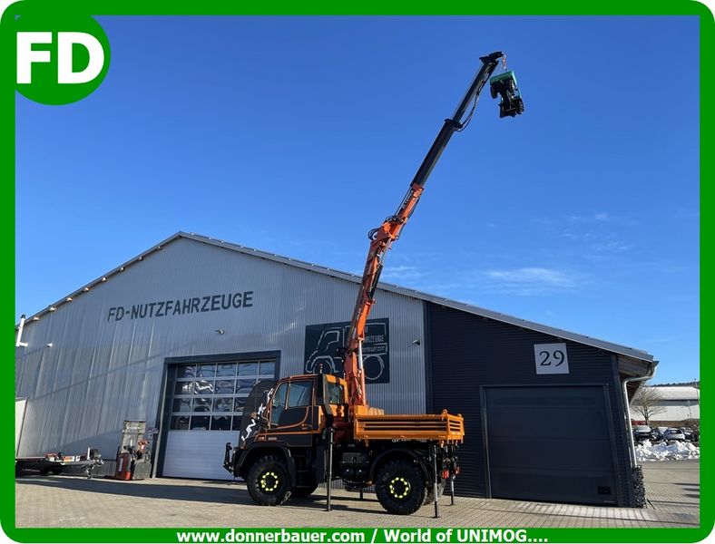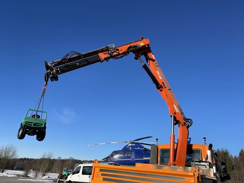 Mercedes Unimog U400 mit Ladekran, Funk, Zapfwelle, Anbau