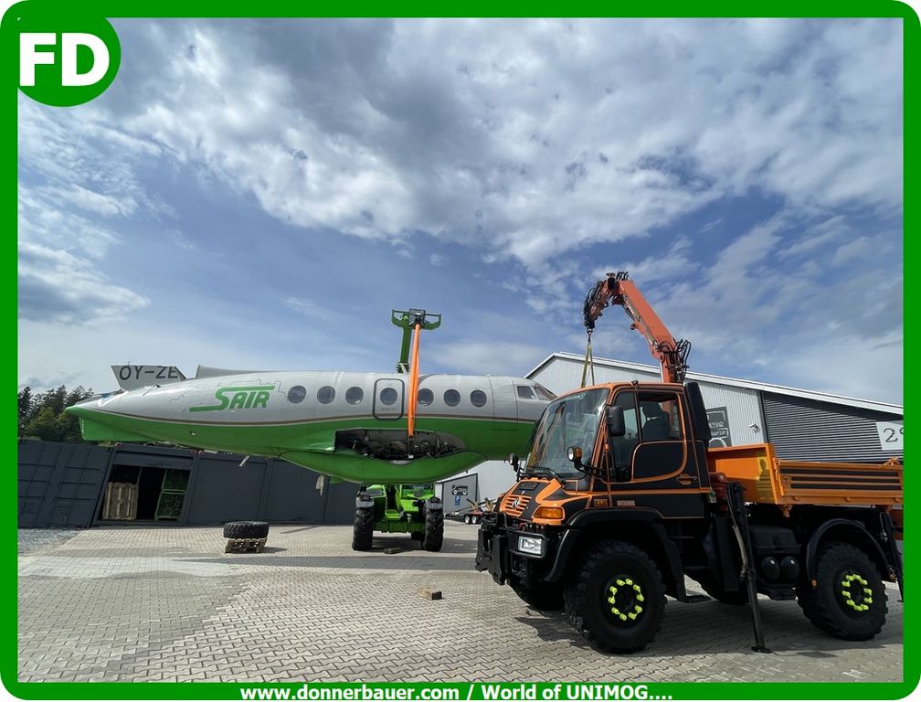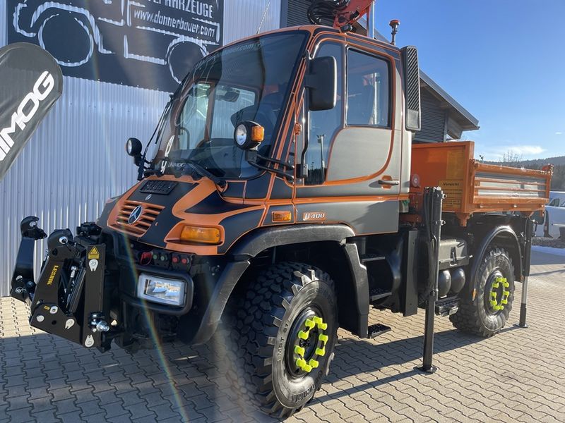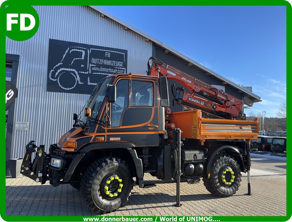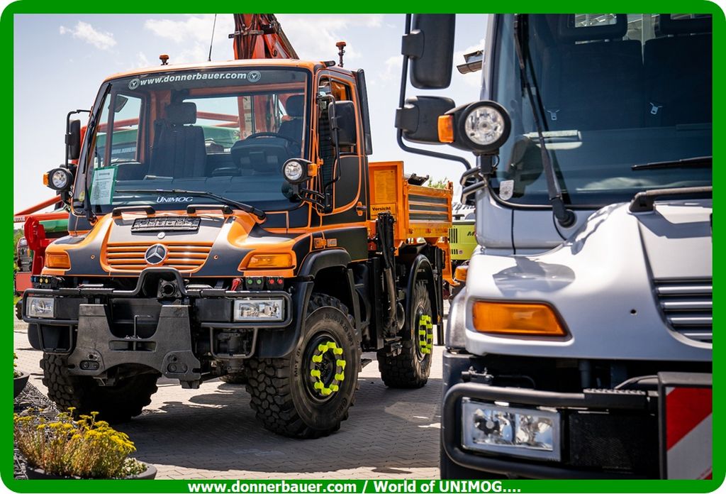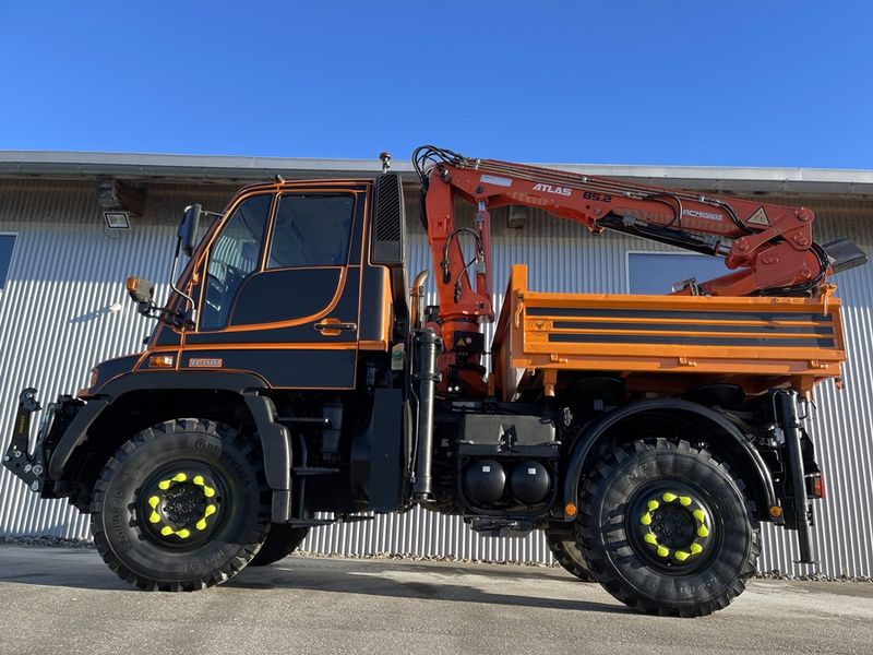 Mercedes Unimog U400 mit Ladekran, Funk, Zapfwelle, Anbau
