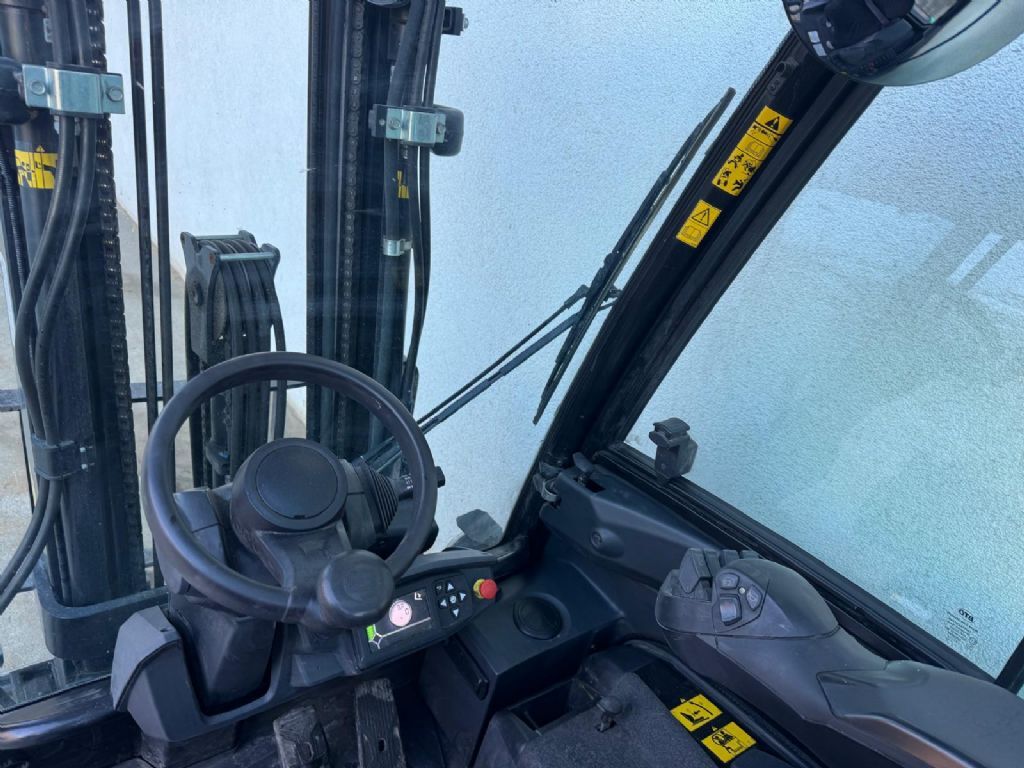 Bauart: Frontstapler / Elektro 4 Rad-Stapler, Tragkraft: 2000kg, Hubhöhe: 4750mm, Bauhöhe: 2125mm, Freihub: 1080mm, Gabellänge: 1150mm, Batterie: PzS Bj. 2022 48V 625Ah , Bereifung vorne: Superelastik Einfach , Bereifung hinten: Superelastik Einfach , Anbaugeräte: Seitenschieber, Zinkenverstellgerät, Sonderausstattung: 3. Ventil, 4. Ventil, Arbeitsscheinwerfer hinten, Arbeitsscheinwerfer vorn, Dachabdeckung, Frontscheibe, Heizung, Lastschutzgitter, Vollkabine, Vollfreihub, CE Zertifikat, Safety Light, Innenspiegel, Rundumleuchte, Scheibenwischer, Sitzheizung, LED, Sitz, Sonderausstattungbeschreibung: FINGERTIP / BLUE SPOT VORNE & HINTEN