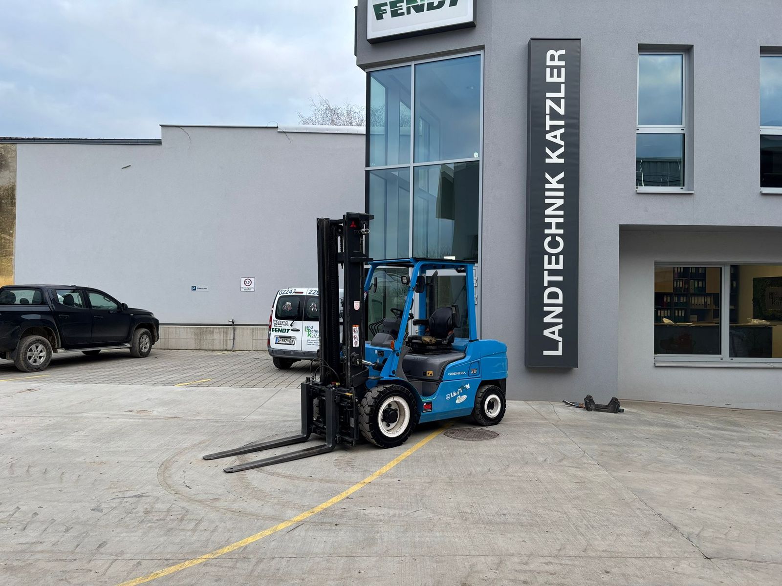 - Modell: Mitsubishi FD 35NTD - Treibstoff: Diesel - Hubgerüst: Duplex, Hubhöhe 4000 mm - Bauhöhe: 2680 mm - Ventile: 4 Ventile für manuelle Steuerung - Schlauchführung: Für Simplex-Masten vorbereitet - Bereifung: Super-Elastik 250-15 / 6.50-10 - Auspuff: Höhergelegt – ideal für staubige Arbeitsumgebungen - Seitenschieber: Integriert, 1000 mm, inkl. Lastschutzgitter, mit hydr. Zinkenverstellung - Beleuchtung: 2 LED-Scheinwerfer vorne, LED-Arbeitsbeleuchtung hinten - Rückspiegel vorhanden - Gabelzinken: 1220 × 125 × 45 mm - Sonderlackierung: Rahmen in RAL 5015 Blau, Felgen in RAL 9003 Weiß
