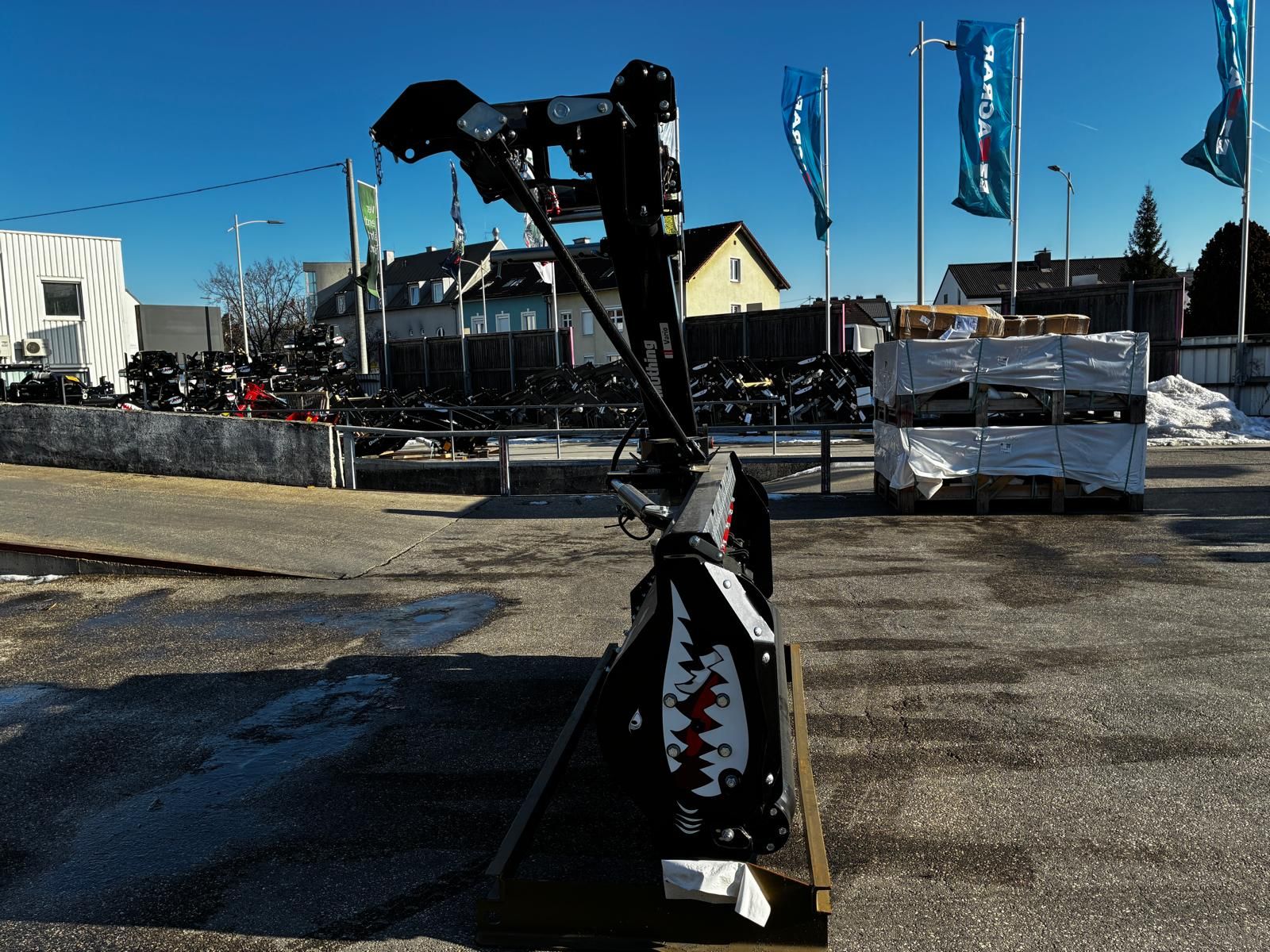Das Mulchgerät MU-AS/S 220 von Müthing, Baujahr 2025, präsentiert sich als ein vielseitig einsetzbarer Heck- und Seitenmulcher mit einer beeindruckenden Arbeitsbreite von 220 cm. Dieses Modell, das bisher noch keine Betriebsstunden aufweist, zeichnet sich durch seine besonders robuste Bauweise und eine Vielzahl von durchdachten Ausstattungsmerkmalen aus. Die Maschine ist in einem eleganten Schwarz lackiert und für den Heckanbau mit einem breiten Dreipunktbock der Kategorie 2 konzipiert. Gefertigt aus hochwertigem Feinkornstahl QSt/E, bietet sie eine hydraulische Seitenverschiebung über einen Schwenkarm mit einem Verschiebebereich von 171 cm, was den Gesamtarbeitsbereich auf bis zu 421 cm erweitert. Der Arbeitsbereich des Mulchgeräts reicht von 90° nach oben bis 60° nach unten, was eine flexible Anpassung an verschiedene Einsatzbedingungen ermöglicht. Ein Getriebe mit Freilauf für 540 U/min sorgt für eine zuverlässige Kraftübertragung, während ein Keilriemenschutz mit Kontrollöffnung die Wartung erleichtert. Die automatische Anfahrsicherung über einen mechanisch wirkenden Raumlenker und die Transportverriegelung in 90°-Stellung mit Absperrhahn erhöhen die Sicherheit im Betrieb. Für eine optimale Zerkleinerung des Mulchguts kann die verstellbare Vario-Schneidschiene individuell eingestellt werden. Die schraubbare Kurzhäckselleiste im System "Haifischflosse", ein Müthing-Patent, sorgt für eine effiziente Zerkleinerung. Dank der robusten Starinth® Stützwalzenlagerung und der Hardox-Verschleißkufen mit Teilungseffekt, die ebenfalls schraubbar sind, ist das Gerät auf Langlebigkeit ausgelegt. Zusätzlich verfügt der Mulcher über hochvergütete Pendelschutzklappen aus Federstahl und einen laufruhigen Rotor mit speziell geformten, spiralförmig angeordneten Werkzeughaltern, ausgestattet mit M-Hammerschlegeln vom Typ DuraX. Eine Stützwalze zur Höheneinstellung des Mulchgeräts und die erforderlichen Hydraulikanschlüsse – 2 x DW, davon 1 x DW mit Schwimmstellung – runden die Ausstattung dieses Mulchgeräts ab. Die Zustandsklasse dieses Modells wird mit "Besonders gut" (Klasse 1) bewertet, was den hochwertigen Zustand und die sofortige Einsatzbereitschaft dieses Mulchgeräts unterstreicht.