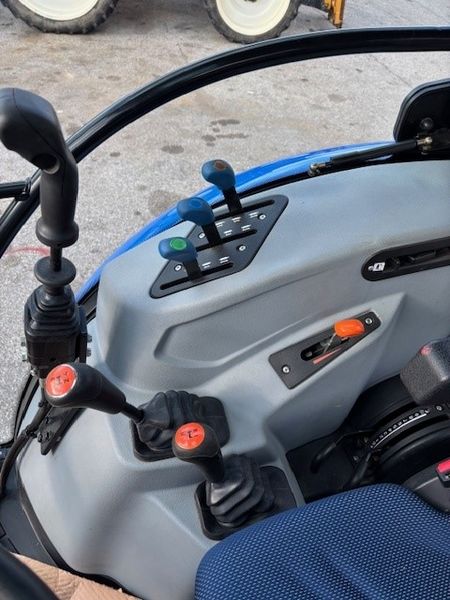New Holland T 4.75 S, Baujahr 2022, 75 PS, 600 Betriebsstunden, 12/12 Wendegetriebe, 40 km/h, 3 Steuergeräte doppelwirkend, 3 Zwischenachssteuergeräte mit elektrischer Weiche und 4 Anschlüsse nach vorne, Klimaanlage, Luftfedersitz, Radio, Fronthydraulik Zuidberg, Drehleuchte, Fanghacken, Bereifung 420/85R30, 14.9LR20, sehr gepflegt
