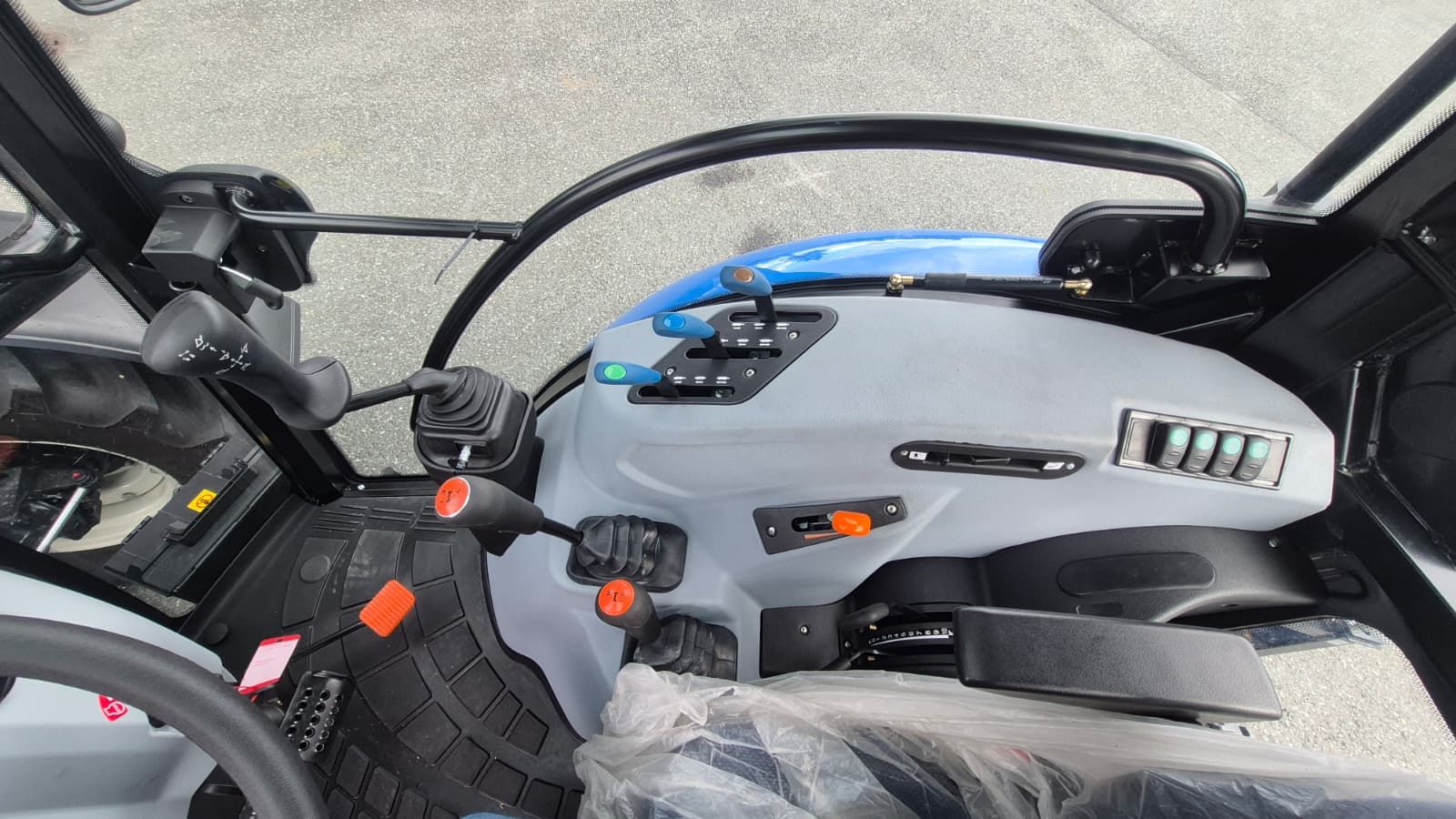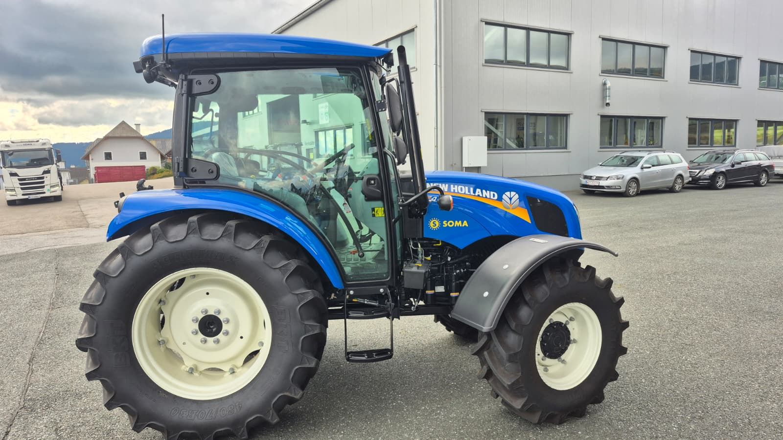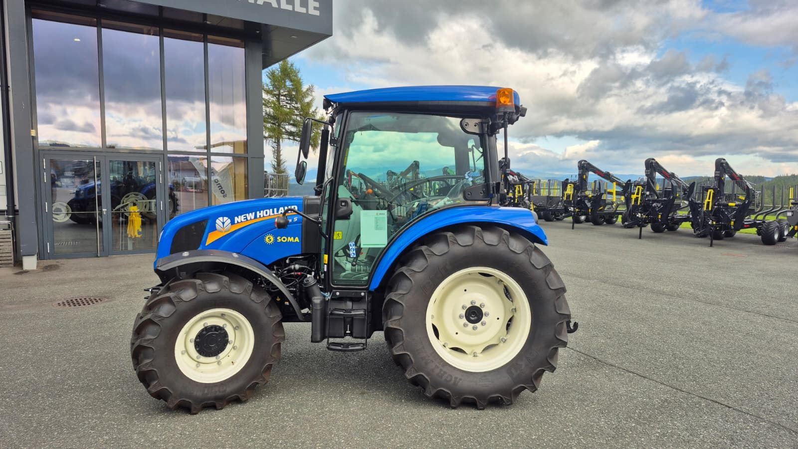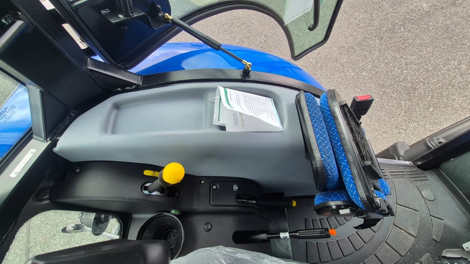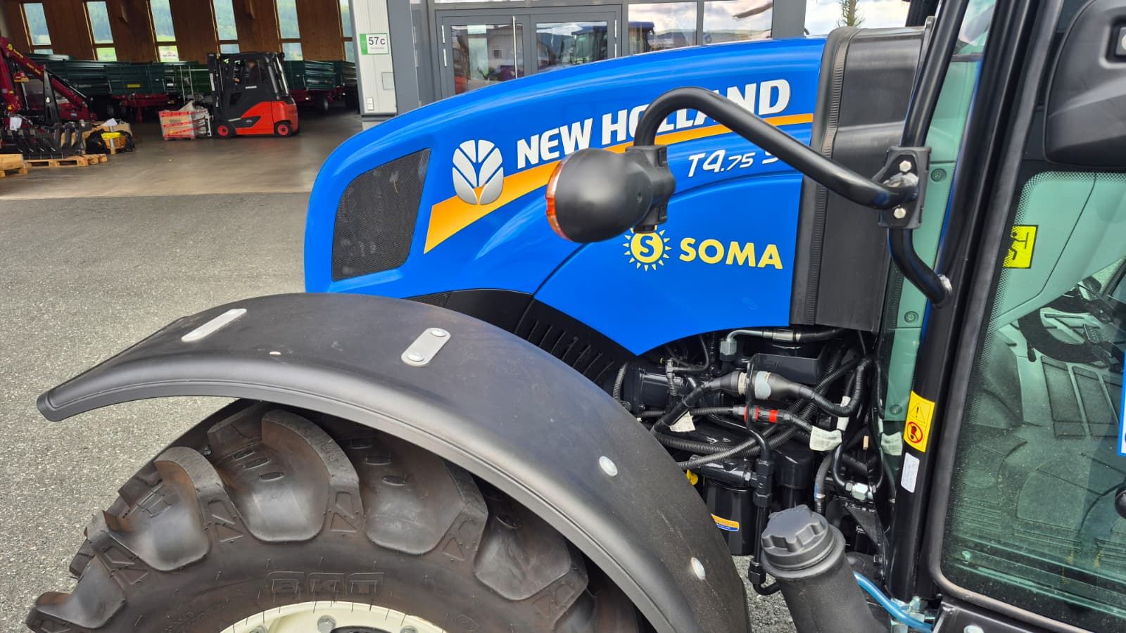New Holland T4.75S CAB - 4WD STAGE V, Syncro-Shuttle Wendeschaltung, 3 Hecksteuergeräte mit Standardkupplungen, 2 Zwischenachssteuergeräte & Kreuzschalthebel mit Schalter für dritte Funktion, Zapfwelle 540/540E, Anhängerkupplung mechanisch, Ackerschiene, Vorderachsbock mit Vorbereitung für die Frontzapfwelle, Smart-Paket, Front- & Heckscheibenwischer, 380/70R20 Verstellfelgen HD, 480/70R30 Verstellfelgen, Komfortkabine mit Luftfedersitz Grammer mit Stoffbezug, Beifahrersitz mit Gurt, DeLuxe Radio mit Bluetooth, 4x Arbeitsscheinwerfer am Dach (2x vorne, 2x hinten).