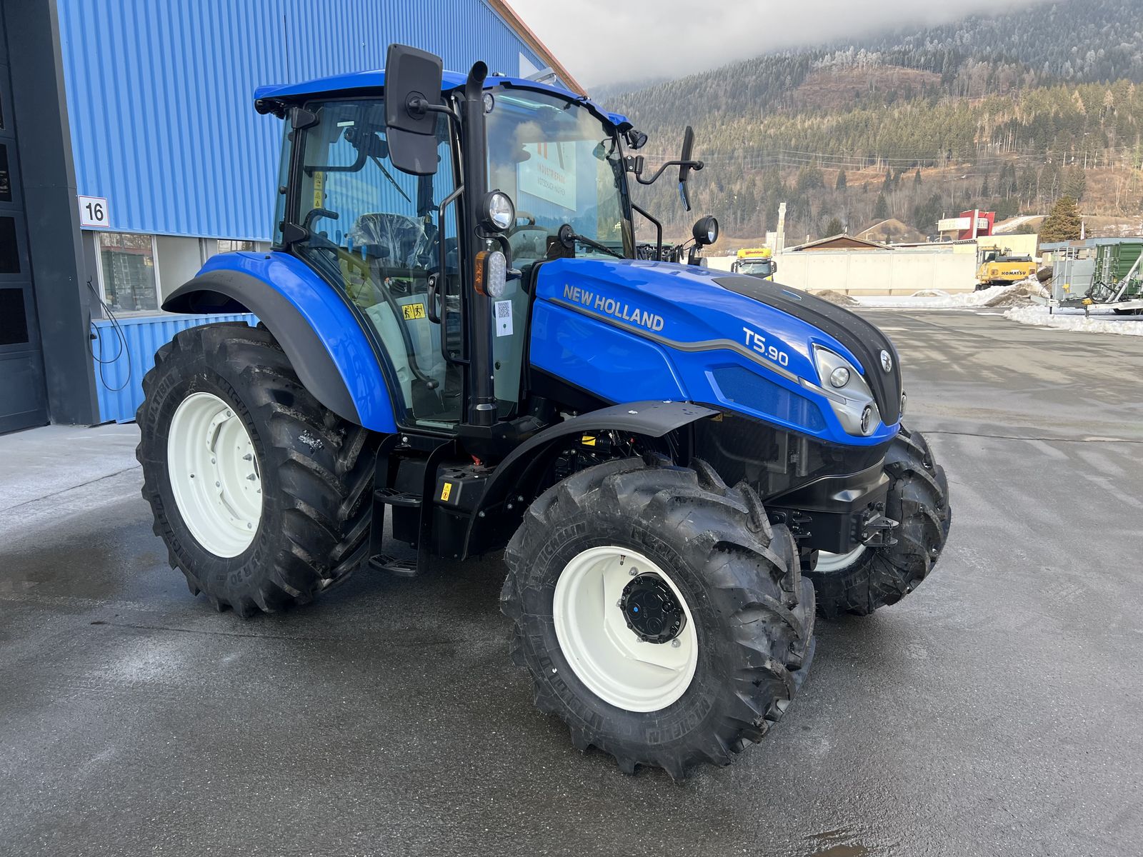 New Holland T5.90 DC mit neuen Design in folgender Ausführung: * FPT 3,6l Vierzylindermotor, EU Stufe 5 mit zwei Motordrehzahlspeicher * Kraftstofftank mit Tankschutz Diesel: 130l AdBlue: 10l * 24x24 Getriebe mit 2-fach Lastschaltung 40 km/h bei reduzierter Drehzahl * Powershuttle elektrohydraulisch * Dynamic Start & Stop Funktion (Brake-to-Clutch) * Zapfwellengeschwindigkeiten 540/540E/1000 * Handbremse und mechanische Getriebeparksperre/Parkbremse * hydraulischer Differenzialsperre * 64 l/min Pumpe für Arbeitshydraulik inkl. 36 l/min Lenkungspumpe * 3x Hecksteuergeräte davon 2x mit Schwimmstellung * Deluxe-Hydraulikkupplungen inkl. Leckölsammelbehälter * Zwischenachssteuergeräte mit mech. Kreutzschalthebel Advanced inkl. Umschaltknopf für 3. Funktion, elektronischer Kupplungsknopf (PowerClutch), Bedienung der Lastschaltstufen, Bedienung des Powershuttle (Richtungswechsel vorwärts/rückwärts), Bedienung des Motordrehzahlspeichers * Außenbedienung für Heckhubwerk und Heckzapfwelle * Elektronische Hubwerksregelung 2 externe Zusatzhubzylinder max. Hubkraft: 4.700 kg * Anhängerkupplung automatisch und höhenverstellbar * 2-Leiter Anhängerbremsventil hydraulisch * Luftfedersitz (Grammer), Stoffbezug, Armlehnen, Gurt und 15° drehbar * VisonView-Kabine mit mechanischer Kabinenfederung, * Klimaanlage * Halterung für IntelliView 12 oder Gerätemonitor * 8x LED-Arbeitsscheinwerfer * Rückspiegel mit Weitwinkel * Bereifung vorne: Michelin 440/65R20 * Bereifung hinten: Michelin 540/65R30 * und vieles mehr... Zubehör wie Frontlader, Fronthydraulik, Frontzapfwelle, usw. kann gegen Mehrpreis problemlos nachgerüstet werden! Besichtigung und Probefahrt nach Absprache jederzeit möglich. Wir freuen uns auf Ihre Anfrage!