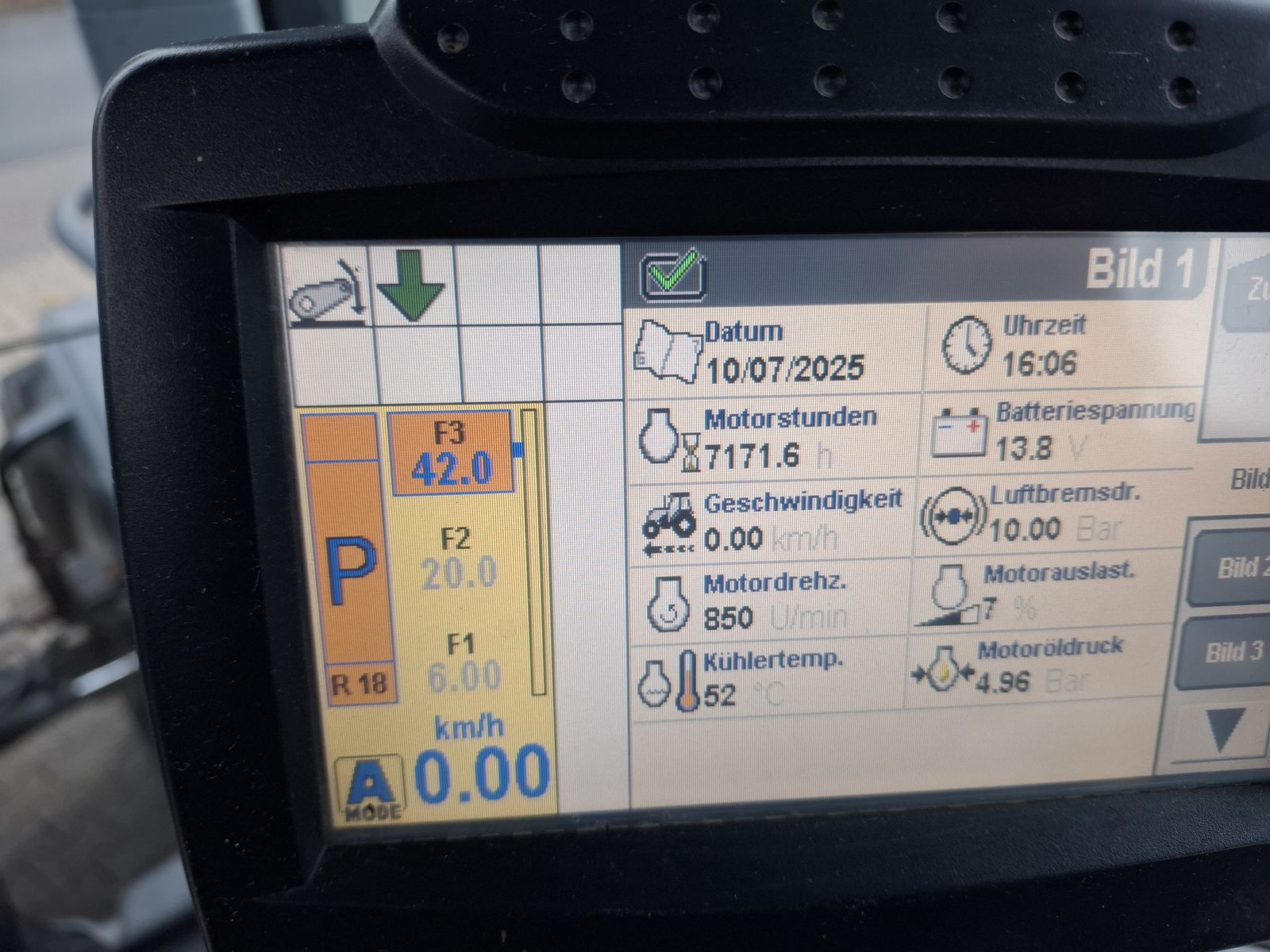 AutoCommand-Getriebe, Fronthydraulik, Frontzapfwelle, Druckluftanlage, Klimaanlage, gefederte Kabine, Vorderachsfederung, 4 doppelwirkende Steuergeräte, elektrische Hubwerksregelung, K80´er Kugel, Hydr. Oberlenker, LoadSensing-Anschluß, 540/65 R30 80%, 650/65 R42 80%.