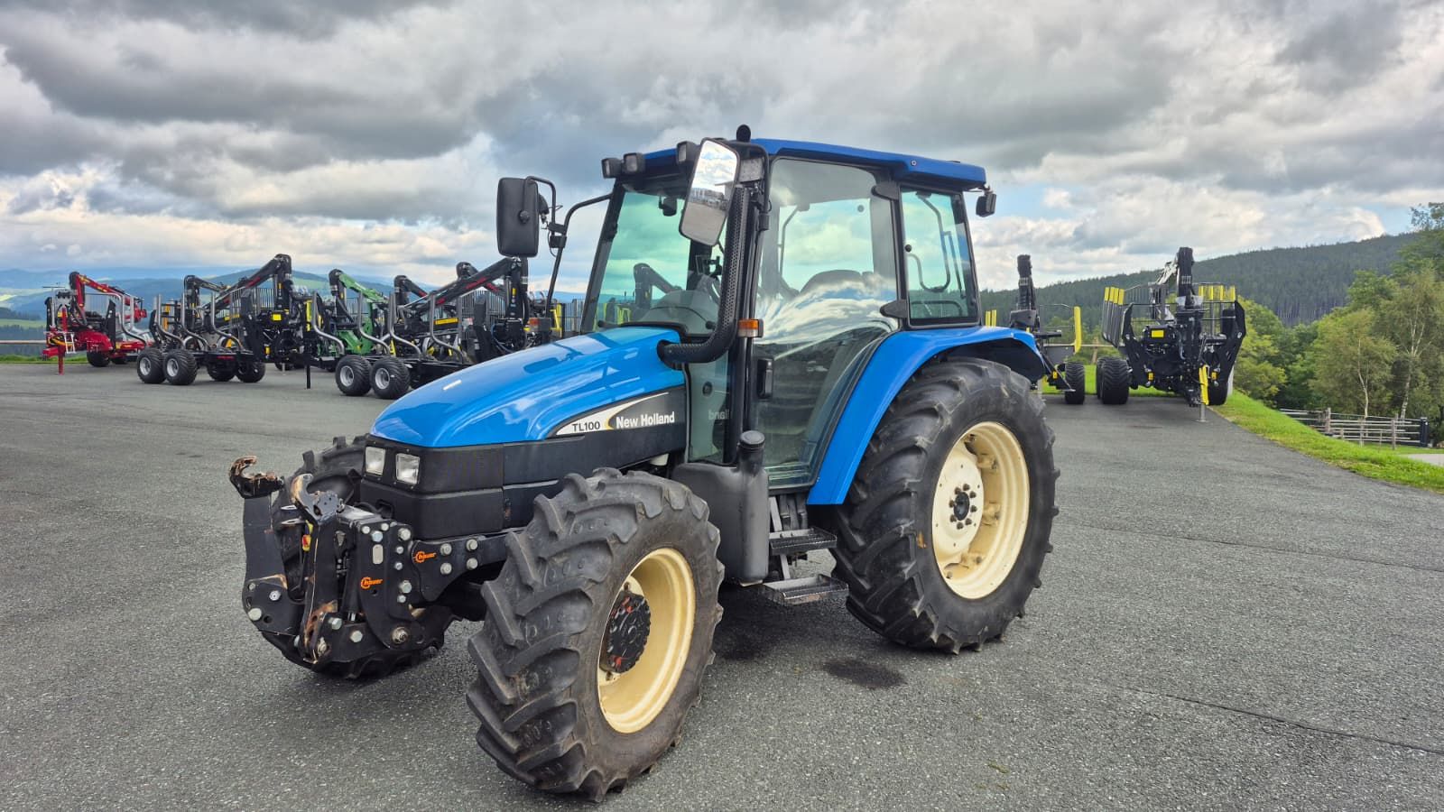 New Holland TL 100 - 4WD , 24/24 Dualcommand mit Powershuttle, EHR-Hubwerksregelung mit Kotflügelbetätigung , 4 Hecksteuergeräte mit Push and Pull-Kupplungen, 2 Zwischenachssteuergeräte & Kreuzschalthebel mit Schalter für dritte Funktion , Wegzapfwelle , druckloser Rücklauf , Zapfwellendrehzahl 540/540E/1000 , Anhängerkupplung mechanisch, Fronthydraulik Hauer , Front- & Heckscheibenwischer, 380/70R24 Verstellfelgen , 480/70R34 Verstellfelgen, Komfortkabine mit Luftfedersitz Grammer , Radio , 10x Arbeitsscheinwerfer (6x vorne, 4x hinten).