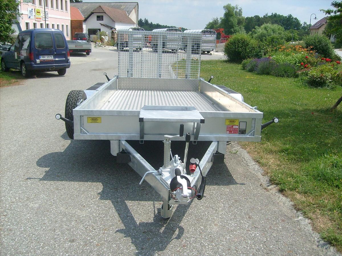 NUGENT BAUMASCHINENTRANSPORTER TIEFLADER P4318H - im Zulauf * Zweiachsanhänger, gebremst * Anhänger ist aus vollfeuerverzinktem Stahl gefertigt * Hochbelastbare Auffahrts-Schienen * Parabelblattfederung und Starrachsen für perfekte Straßenlage * *** Spezial-Federung PARABOLIC EQUALIZER *** * Flacher 15° Grad Ladewinkel - ideal zum Verladen von tiefliegenden Geräten * Knott Auflaufbremse * Rückfahrautomatik * Schaufel/Löffel-Auflage * 8 Zurrösen * Abschließbare Anhängekupplung * hochbelastbares Stützrad * Bereifung 185/70R13C - kein Reserverad * LED-Beleuchtung * Rampe (Modell 520) durchgehend oder geteilt verfügbar Inkludiertes Zubehör: * Auffahrts-Schienen mit integrierten Beladestützen * erhöhter Auflagebock für Baggerarm * geschlossene Seitenwände * 3 Paar versenkte Verzurr-Laschen * zahlreiche Verzurr-Punkte an den Seitenwänden * Beleuchtung nach STVO mit Nebelschlussleuchte und 13-poligem Stecker * EC Certificate of Conformity (COC) Maße und Gewichte: * Innenlänge:4.360 mm * Innenbreite:1.870 mm * Gesamtlänge:6.310 mm * Gesamtbreite:2.450 mm * Bordwandhöhe:280 mm * HzGG: 3.500 kg * Eigengewicht: 900 kg Listenpreis exkl. MwSt. € 7.525,- Inklusive folgender Leistungen: * persönliche Beratung * faire Geschäfte * beste Qualität * Spitzenservice auch Jahre nach dem Kauf