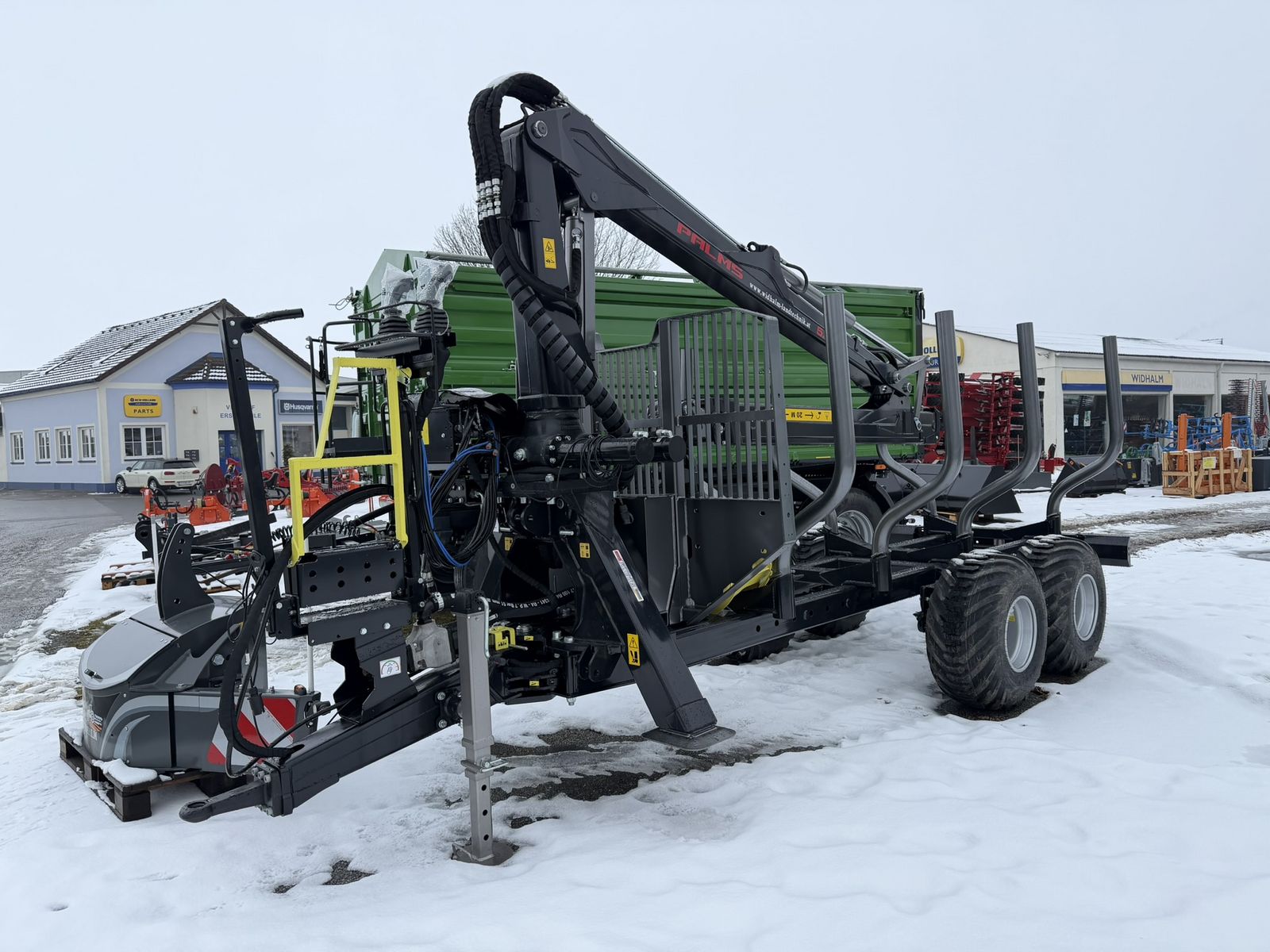 neues Kranmodell K5.75 mit innenliegender Schlauchführung, Hubkraft bei 4m 1440kg, 145cm Greifer, 4 Rungenpaare verstellbar, 5,5to Rotator, 17 kNm Schwenkmoment, hydr. Bremse auf erste Achse, LED Beleuchtung, Hubzylinderschutz, Eigenölversogung mit GW und Stehpodest, Prehydraulik Steuerung, Rahmenauszug, Knickdeichsel mit 2 Zyinder, Bereifung 400/60-15,5 mit verstärkten Forstfelgen und Ventilschutz, Doppelrahmen Forstanhänger mit 10to Gesamtgewicht, top Qualität made by Palms
