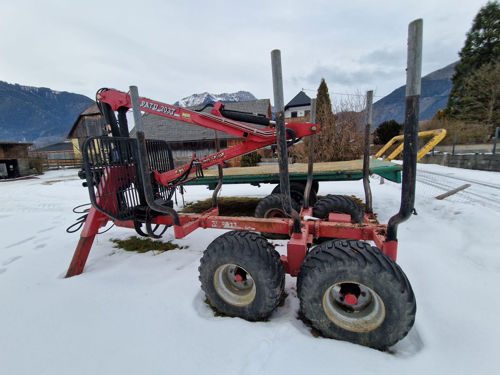 - Drehhebelsteuerung - A - Abstützung - Hydraulische Bremse - 3 Rungenpaare - Zentraler Rahmen - Bereifung 400/60-15.5 - Forstkran 6,7m, Greifer mit Rotator - Stehpodest - Versorgung über Traktor - Kundenvermittlung