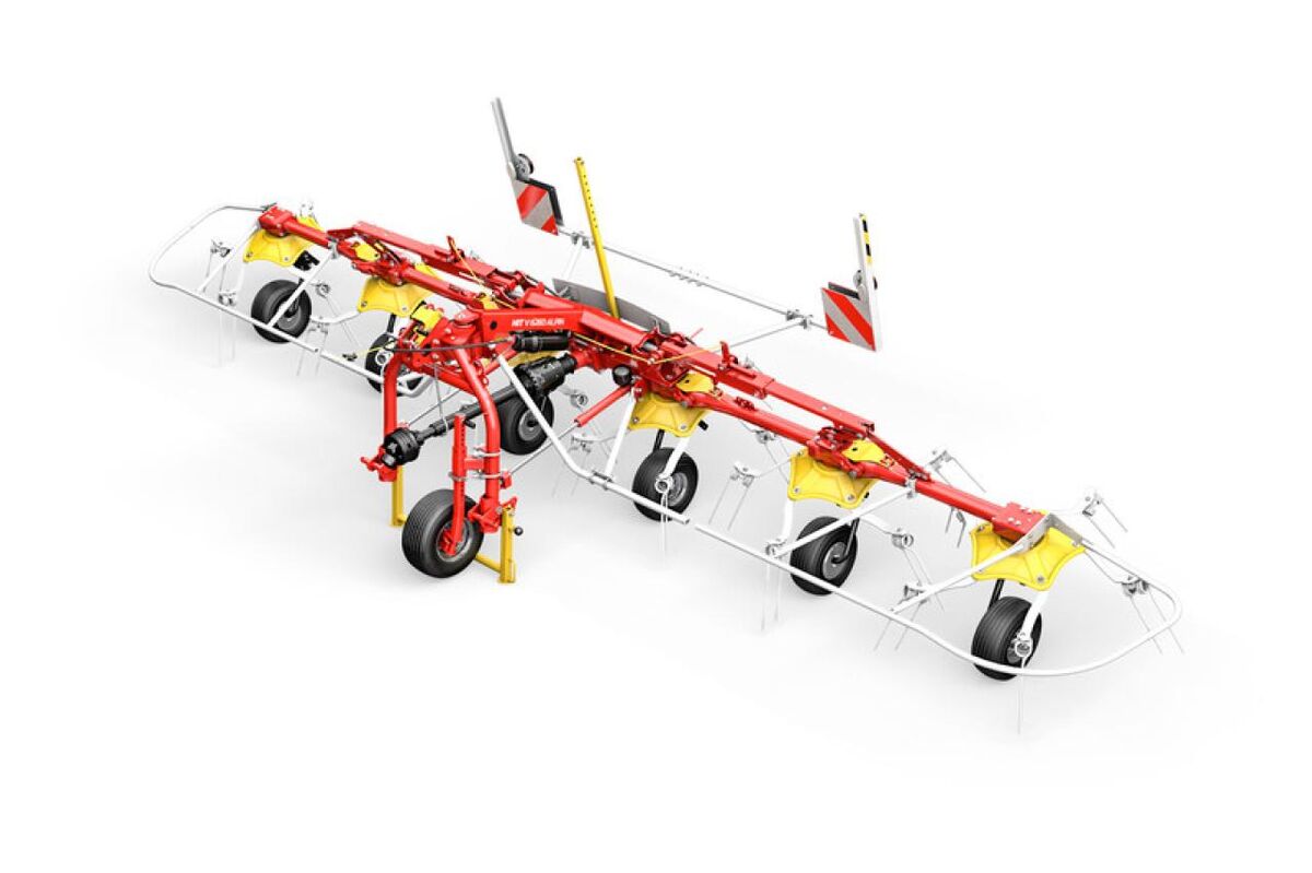 ________ Zettkreisel Hydraulikanschluss 1 x einfachwirkend für die Aushebung Arbeitsbreite m 6,6 Arbeitsbreite DIN m 6,2 Transportbreite m 2,55 Transporthöhe m 3,7 Abstellhöhe m 3,3 Gewicht kg 530 Anzahl Kreisel Stk. 6 Anzahl Arme pro Kreisel Stk. 5 Leistungsbedarf PS 40 Zinkentyp ungleiche Schenkellänge Zinkenqualität Super C Zinkenverlustsicherung HEAVY DUTY serienmäßig Antrieb Gelenkwelle Antriebsdrehzahl U/min 540 Kreiseldurchmesser m 1,38 Grenzstreueinrichtung mechanisch einzelne Räder Weitwinkelgelenkwelle optional Anbaubockdämpfung hydraulisch Bereifung Kreisel außen / innen 15 x 6,0-6 / 15 x 6,0-6 ohne Warntafeln und Beleuchtung Konfiguration: P800200 inkl. Gelenkwelle P110100 Antrieb 540/Umin P130350 Zentrierzylinder hydr. P290400 Unterlekerkonsole Kat 2 P410030 Hydrolift P420010 Oberlenkerkonsole oben P160205 Tastrad 16 x 6,5-8 mit Heckanbausatz (option) in serienm. Lieferumfang. inkl. Bedienungsanleitung
