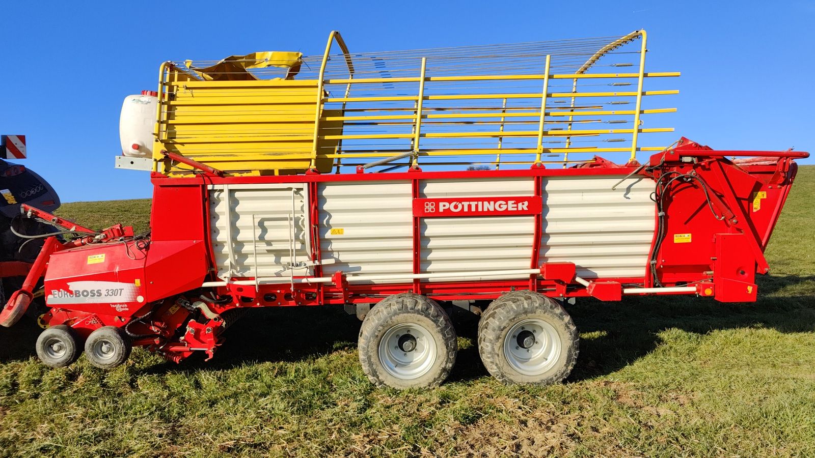 Pöttinger Euroboss 330 D-T - Ladewagen mit Förderschwingen - Tieflader - Silierschneidwerk mit 31 Messern - SUPERMATIC Ladeaggregat mit 4 Förderkämme - hydr. Schneiwerkschwenkung - Easy-Move seitliche Schneidwerkschwenkung - Dosierwalzen (unbenutzt) - Tandem - Achsaggregat gefedert - 480/45-17 Vredestein Flotation+ - 2L-DL-Bremsanlage - Einstiegstür - Dürrfutteraufbau hydr. - PowerControl Bedienung - Zusatzmitteldosierer - Dosistar - Prallblech 5-reihige PICK-UP mit Rolle - Tandem Tasträder - hydr. Knickdeichsel - hydr. Kratzbodenantrieb - Bj. 2007 - 2800 Fuhren - 9000kg GG