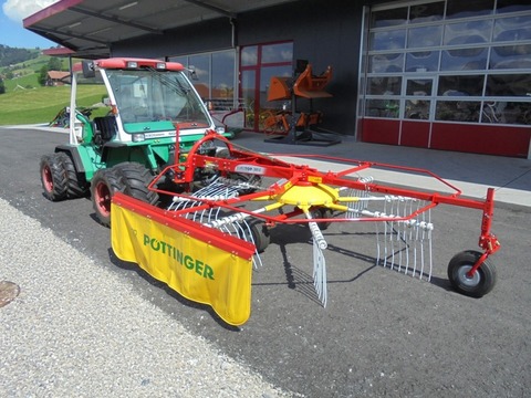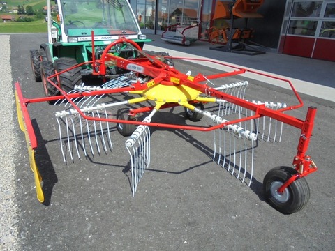 Leichter Frontkreiselschwader für Mähtrac und Terratrac, Arbeitsbreite Spezial 3.40m, Kreiseldurchmesser 2,82 m, 4 Zinkenreihen, Frontanbau mit Tastrad,mit Umkehrgetriebe, passend zu Aebi, Reform und Rasant, auch Heckanbau möglich, Archivfoto, Seriennummer:T-68