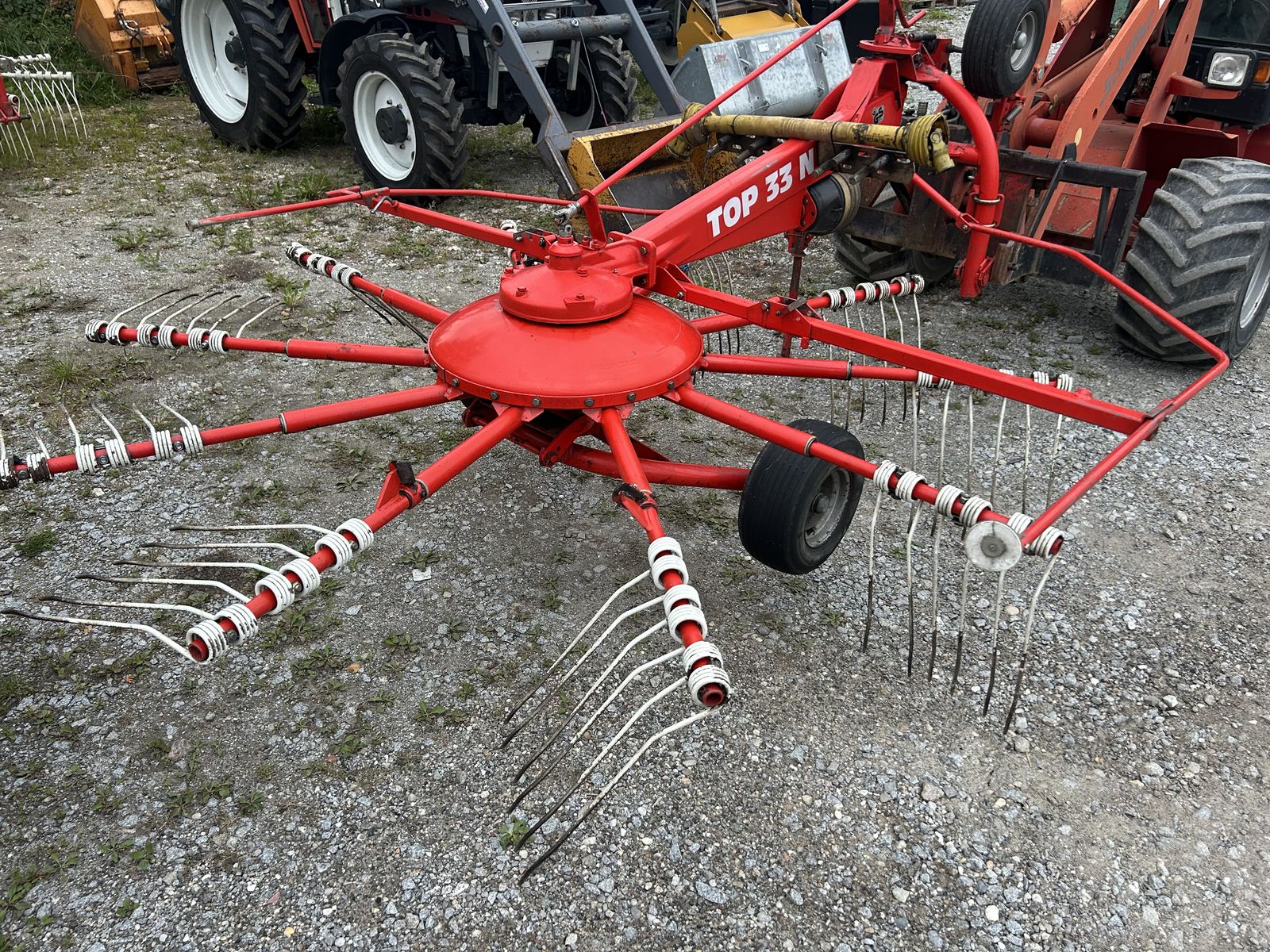 Pöttinger Schwader Top 33 N mit Schwenkeinrichtung, optimal für kleine Traktoren. extm leichtzügig!