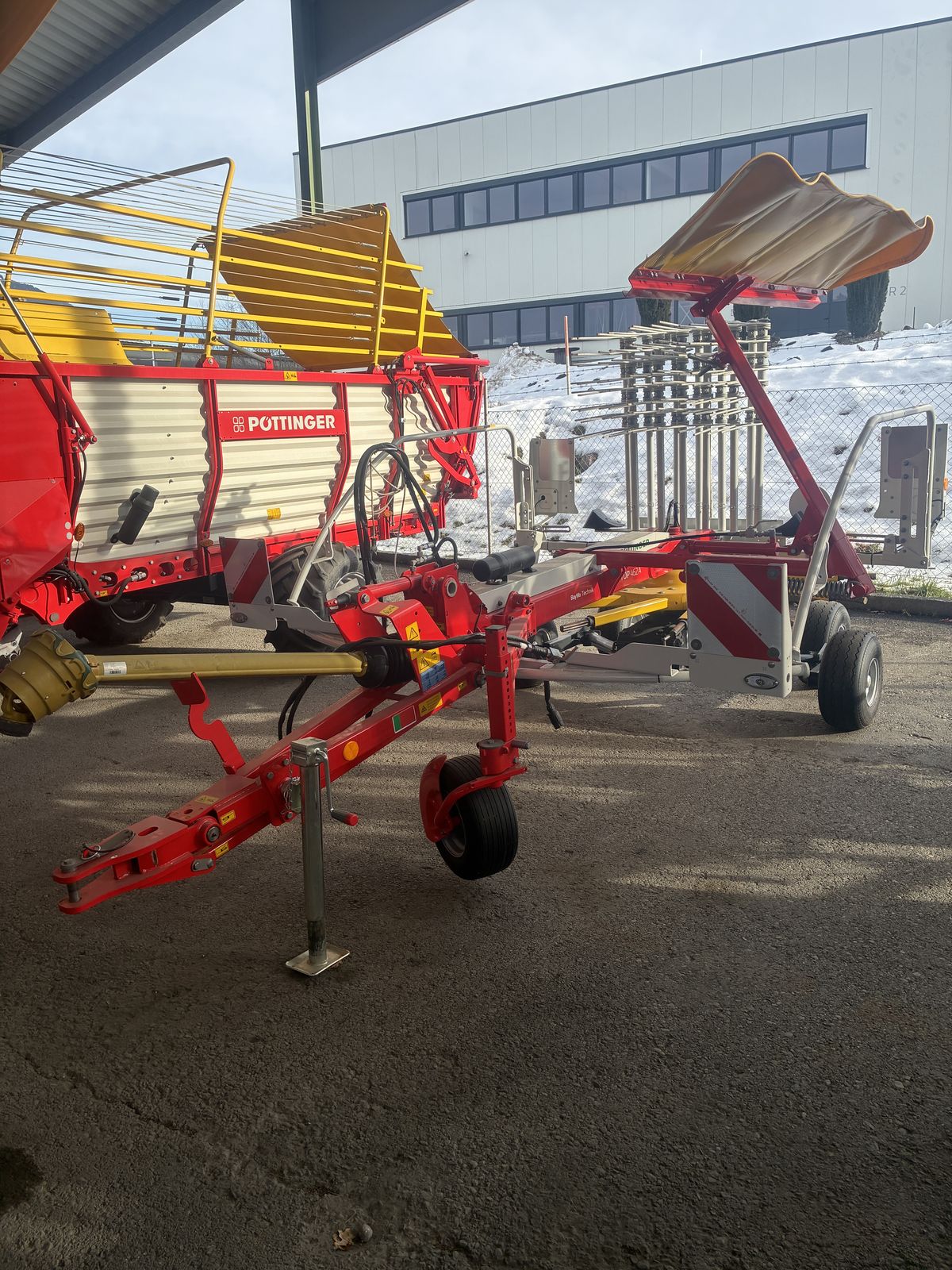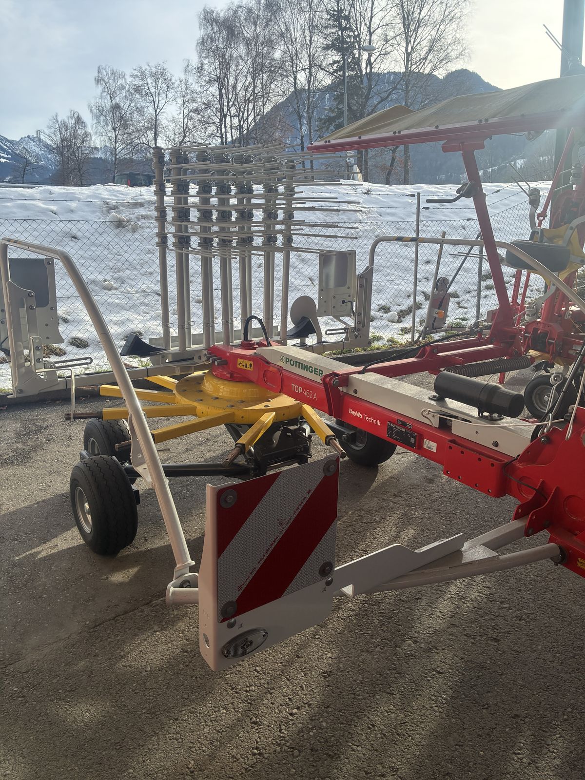 Pöttinger Top 462 A Weitwinkelgelenkwelle mit Freilauf 1 3/8" 6-teilig Parallelogrammdeichsel, Tandembereifung 18,5 x 8,5-8, Tastrad 16 x 6,5-8 Beleuchtung, Hydraulik Schwadtuchschwenkung, 25 km Tafel