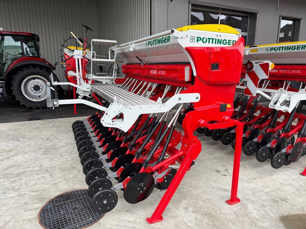 Aufbau-Sämaschine Pöttinger Vitasem M 3000 Classic-24 Scheibenscharen Scharabstand 12.5cm-Andruck- und Tiefenführungsrollen-Saatgutbehälter 530lt-Bediensteg mit Handlauf-Compass Bedienung mit Abdrehhilfe-FG-Schaltung 2 Reihen je Spur (erweiterbar)-Rührwelle drehend-Stufenloses Getriebe-Antrieb Säwelle über Sporrenrad-Warntafeln mit Beleuchtung, Gewicht:850