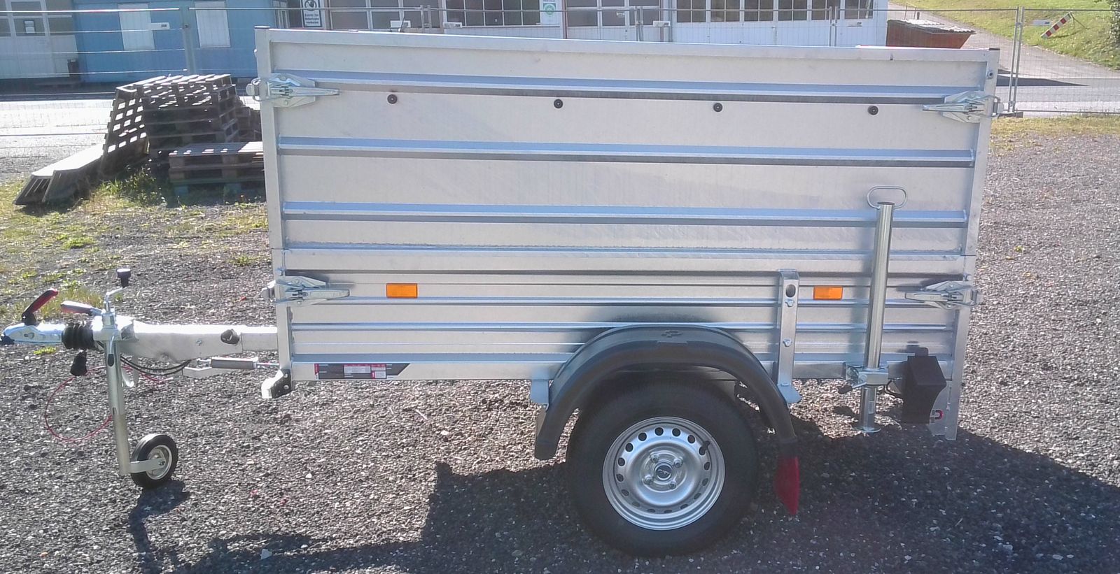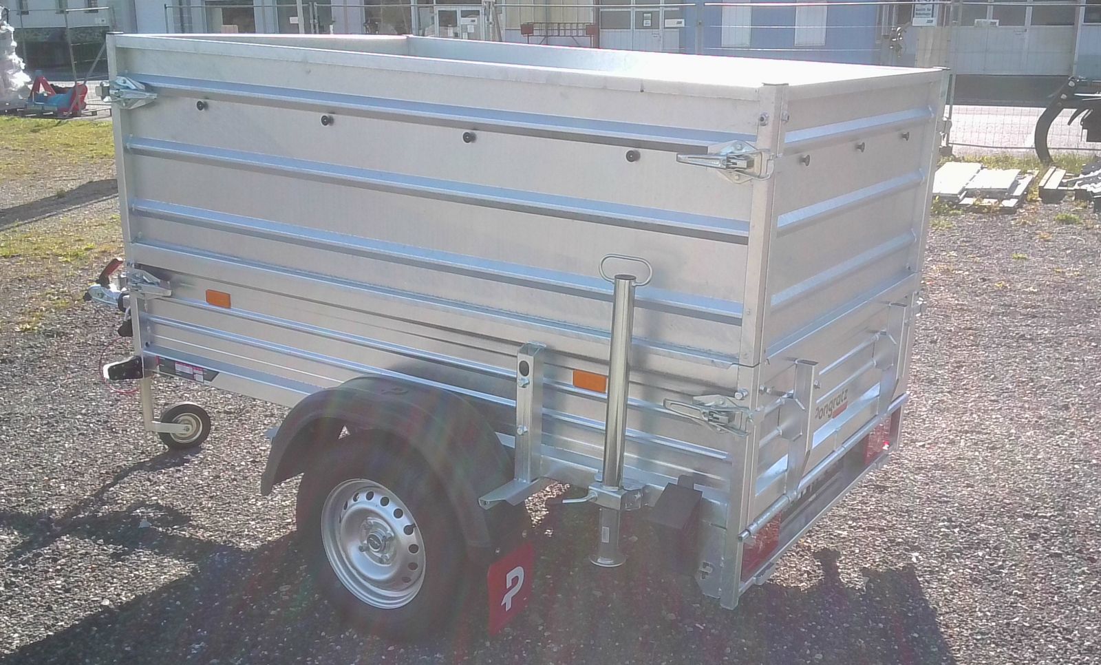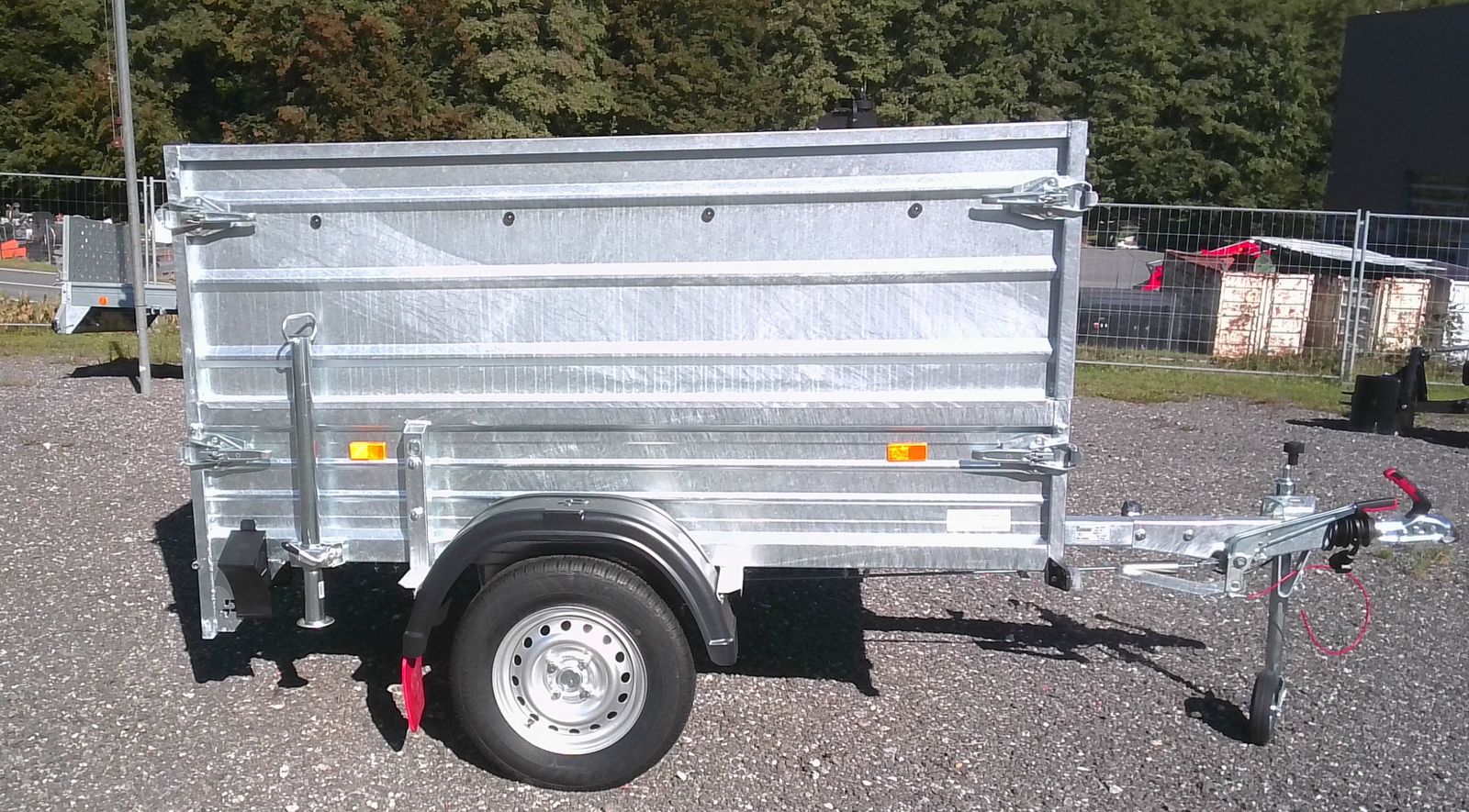 PKW Anhänger der Marke Pongratz, mit 1000kg Gesamtgewicht, robuster vollverzinkter, geschweißter Aufbau, hintere Grundbordwand mit Rohrschanier für besondere Stabilität und Langlebigkeit, Stützrad, Unterlegskeile, Aufsatzwände 600mm zu EPA 206/12, Flachplane, Rohr-Abstellstützen 700mm, Planenknöpfe für Flachplane,