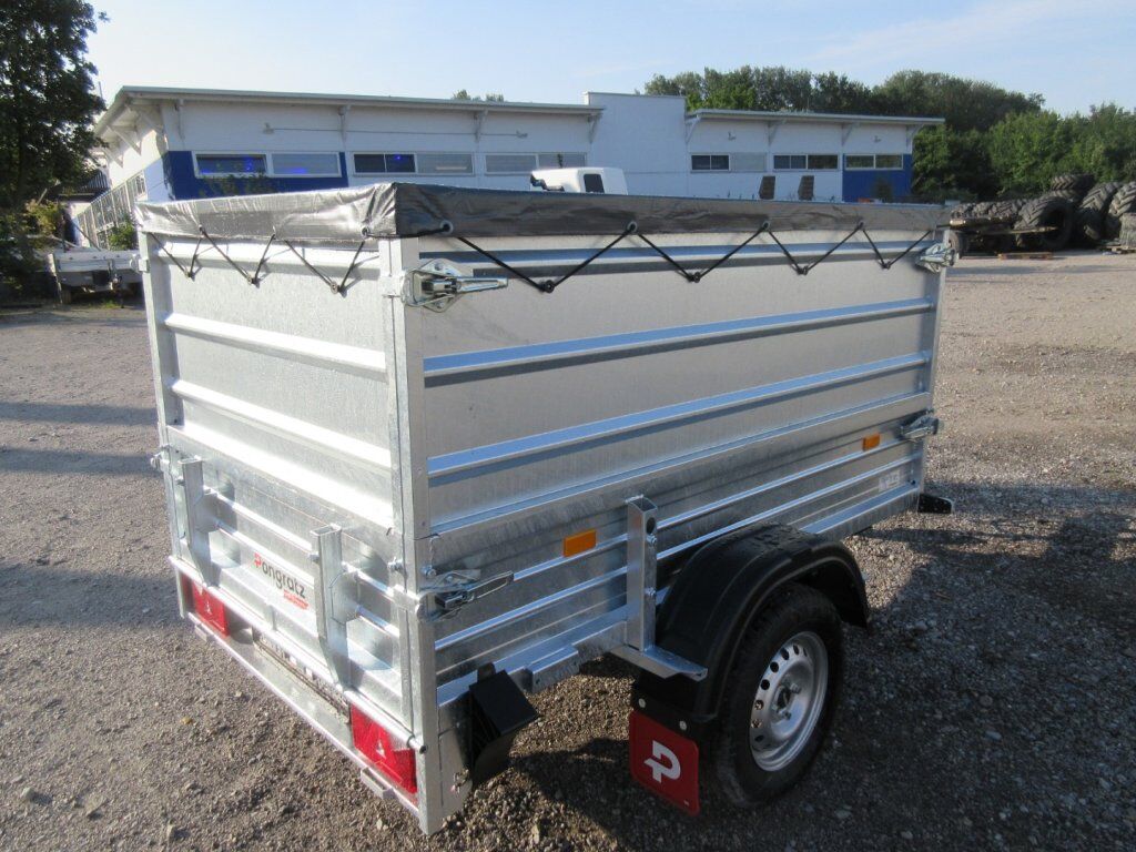 EPA 206/12 U-RS-STK mit Aufsatzwände 600 mm u. Plane Stirnwand klappbar Einachs - ungebremst Gesamtgewicht: 750 kg Stützrad montiert Lademaße: 2010 x 1250 x 400 mm Aufsatzwände: 600 mm Stahl Flachplane