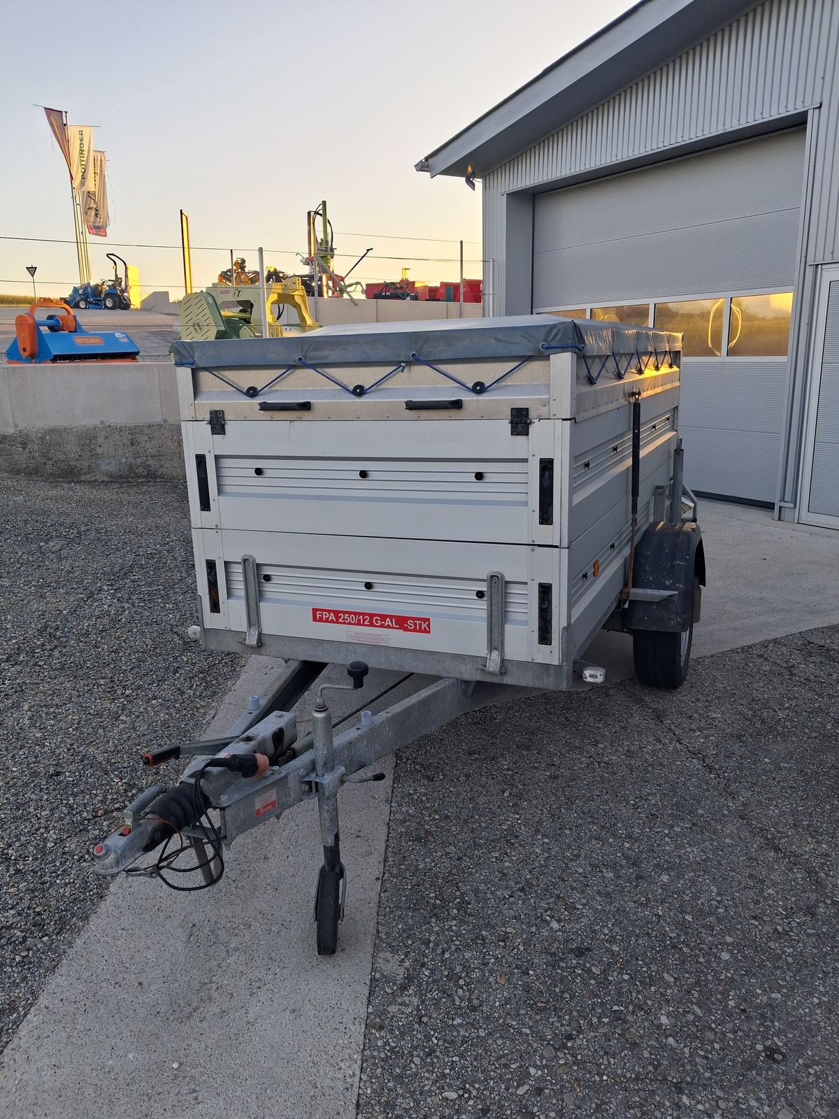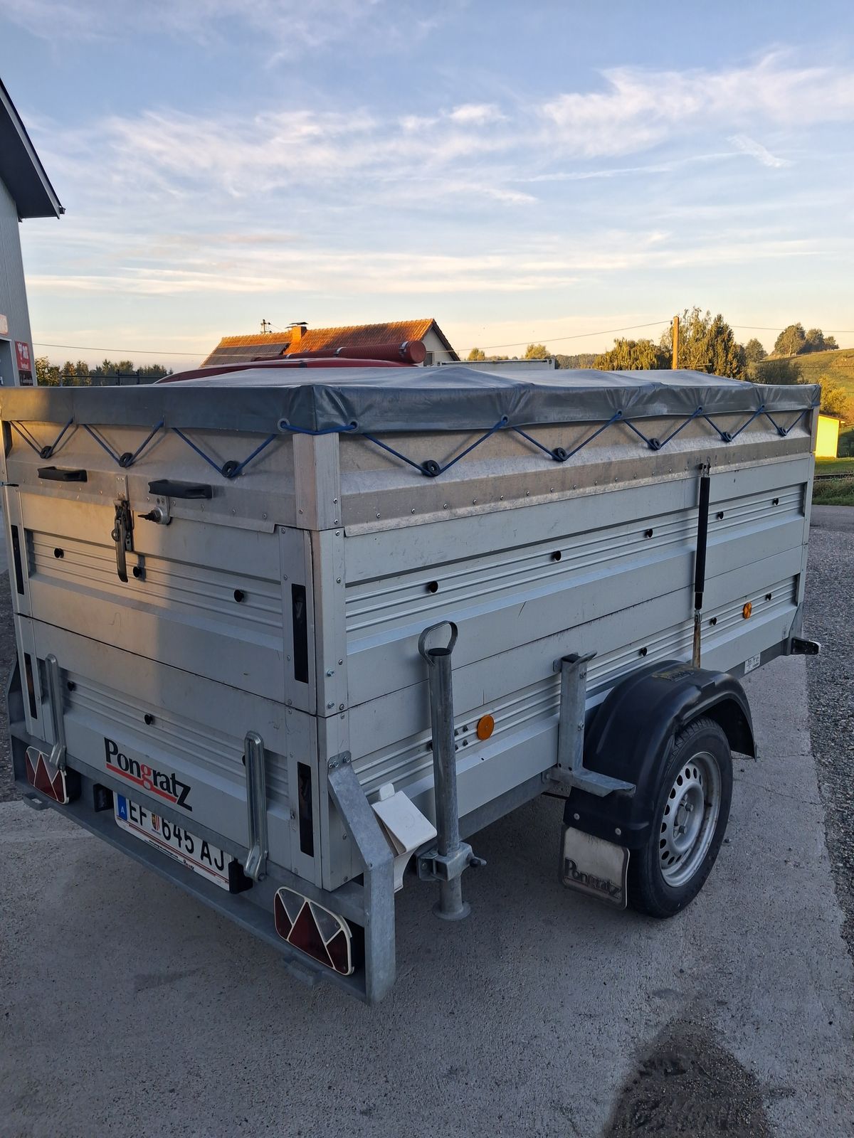 sehr guter Zustand, Pongratz Einachs PKW Anhänger Type FPA 250/12 G, AL-STK, 2,5m x1,2 mx 1m, ALU Bordwände, ALU Aufsatzwände, Deckel mit Plane Klappbar, V-Deichsel, Auflaufgebremst, Bj. 2015, sofort Verfügbar, im Kundenauftrag Handy NR. -