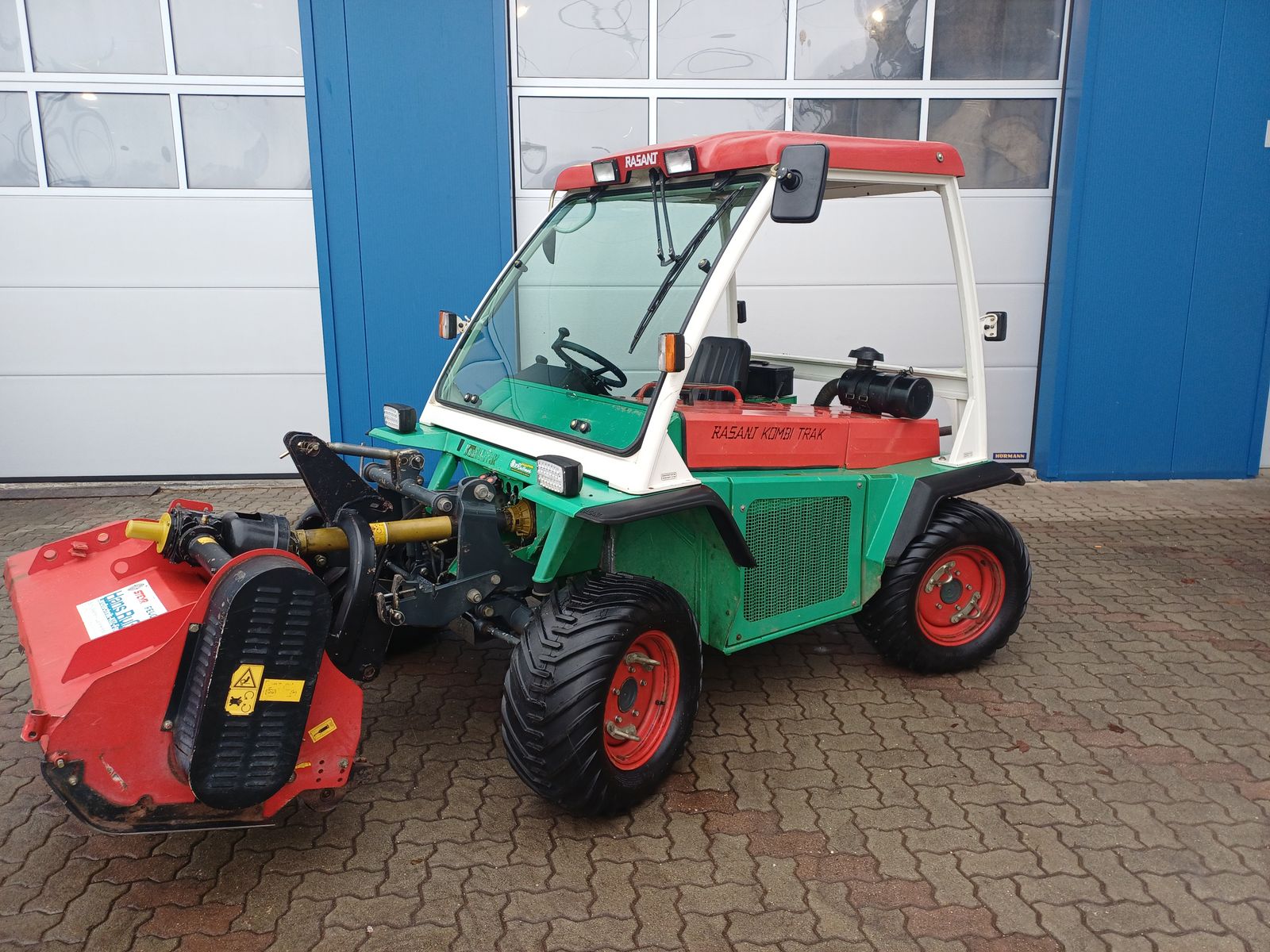 Gebrauchter Rasant 1904 Mähtrac mit Allradlenkung, Hundegang, Front und Heckhydraulik mit Hydraulischer Entlastung, Bereifung Neuwertig, Zwillingsräder Vorne und Hinten mit neuwertiger Bereifung, Hydraulisches Zusatzventil DW, eigene Zapfwellenkupplung, Frontscheibe, gepflegter zustand. Typenschein vorhanden. Rasant (Mörtel) Scheibenmähwerk Breite 2,10m mit Hydraulischem Seitenverschub, Mulcher m.e.a.a.t. 1,6m mit Hammerschlägel und Hydraulischem Seitenverschub.