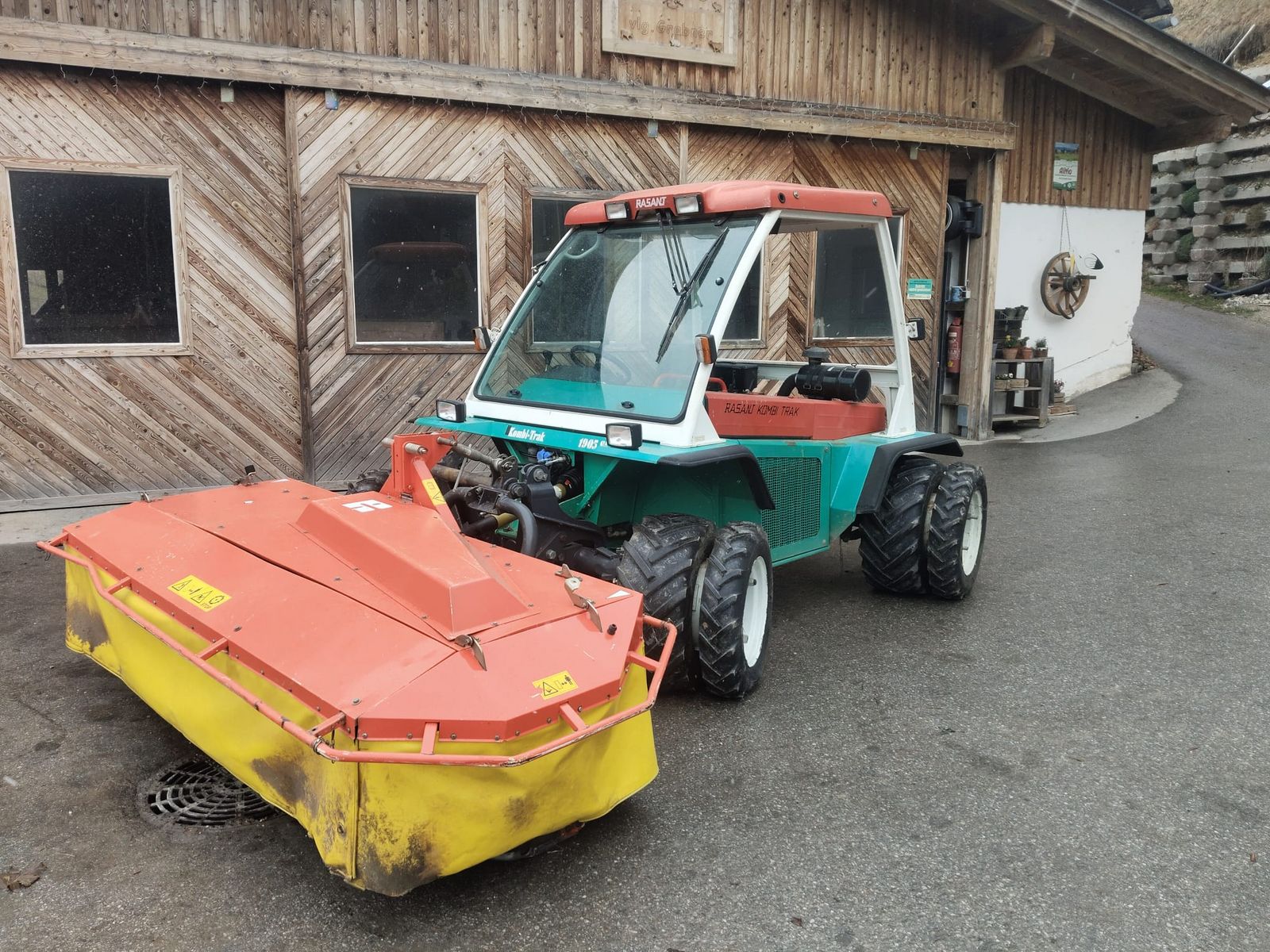 Ein gebrauchter Rasant Kombi Trac 1905 Baujahr 1999, 2162 Betriebsstunden Kubota Motor 42 PS Kabine mit Frontscheibe und Spiegel 3 Steuergeräte, hydraulischer Seitenverschub , hydraulische Geräteentlastung vorne 4x Zwillingsräder, 4x Schneeketten, 8x Ersatzreifen mit Schläuche Reform Scheibenmähwerk 2,4 Meter