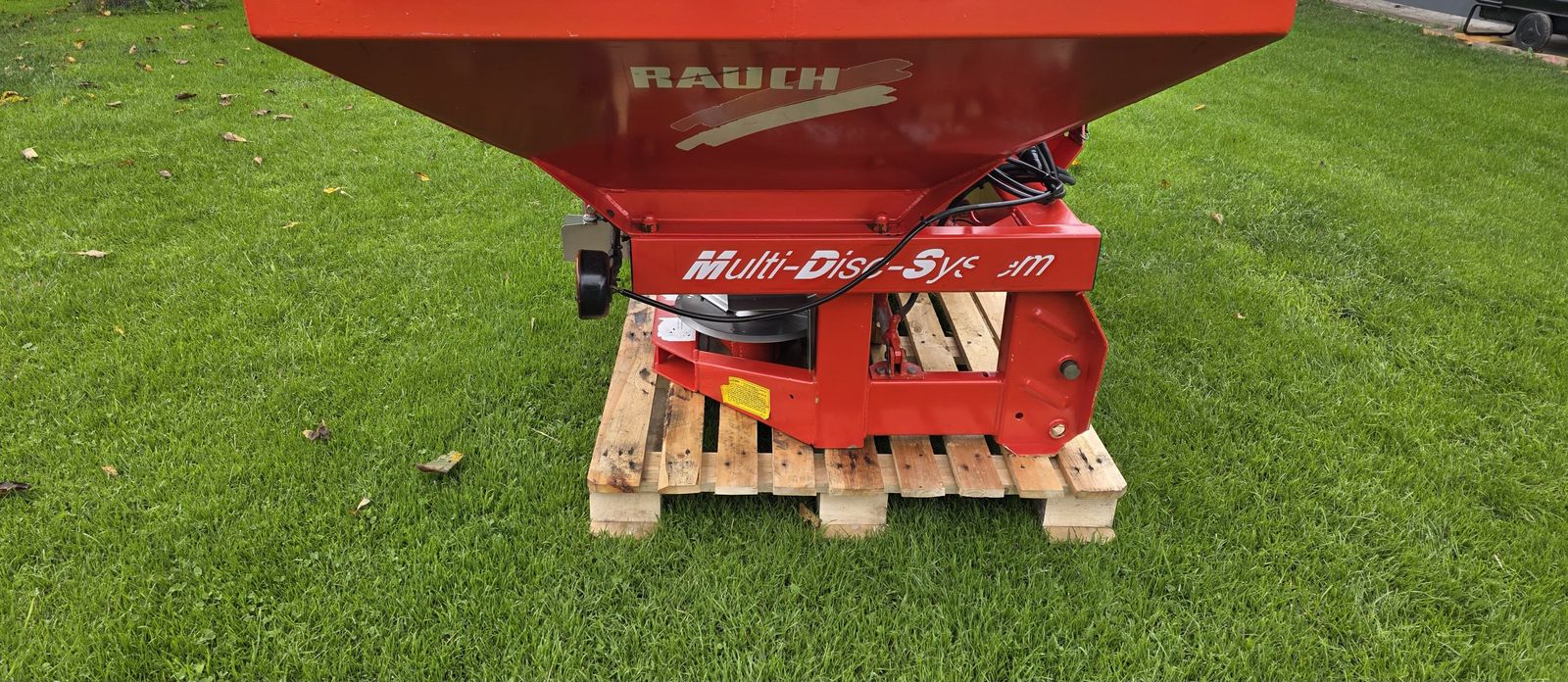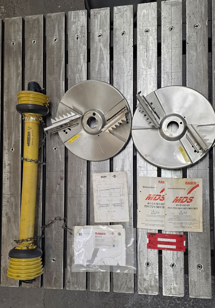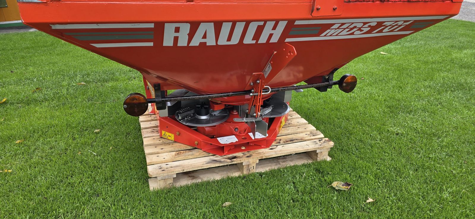 Rauch Düngestreuer MDS 701 mit Aufsatz für 1000 l, mit Streutabelle, 24 und 12 Scheiben, Walterscheid Gelenkwelle, Abdrehtrichter, hydraulischer Schieber für links und rechts. STVO Beleuchtung.