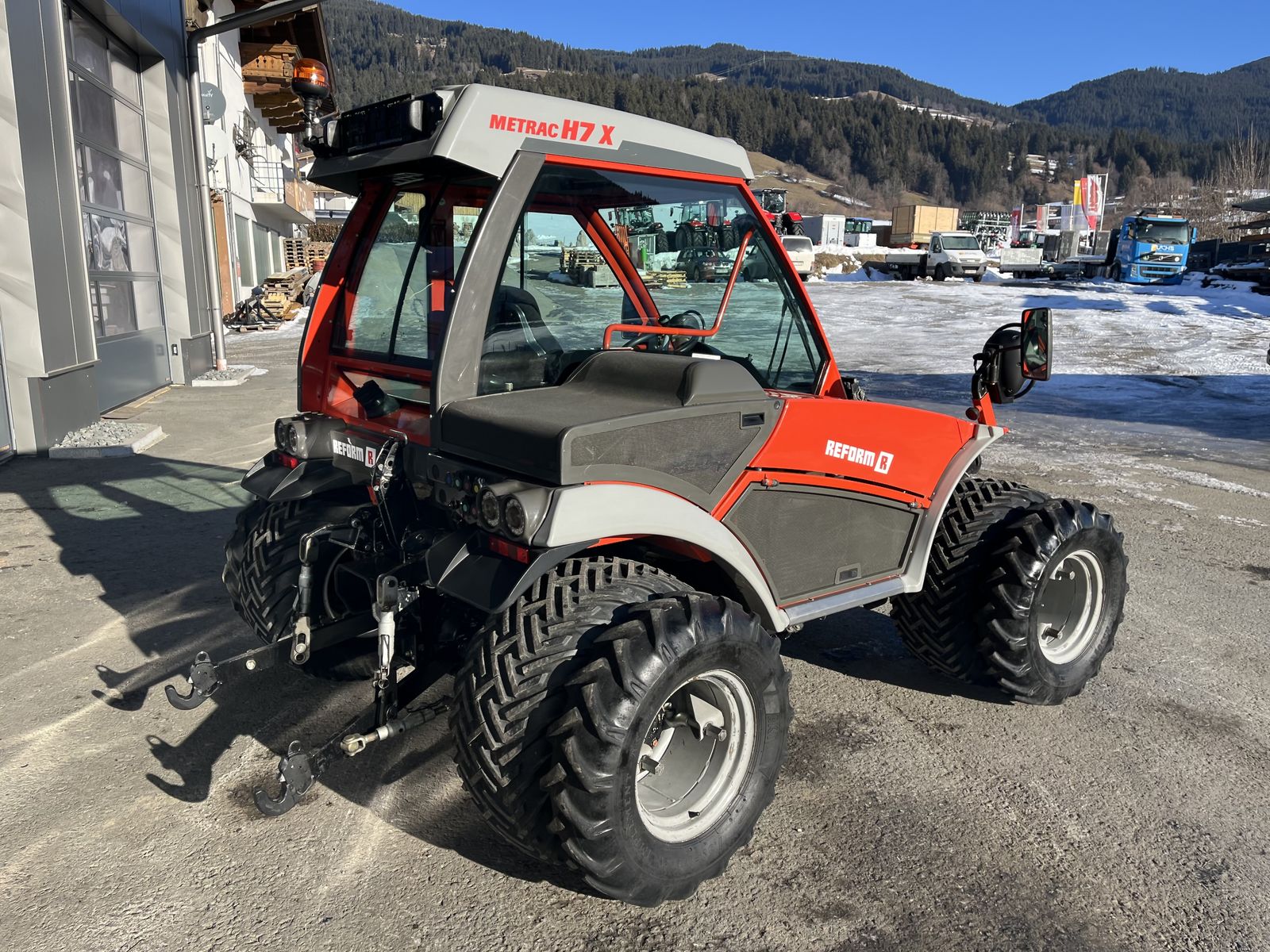 Reform Metrac H7X in Bestausstattung und Serviceheftgepflegt. Motor: VM 4-Zylinder -Turbo- Diesel 71 PS Getriebe: hydrostatischer Fahrantrieb mit mechanischem 2-Stufen-Getriebe und elektrohydraulischer 2 Stufen-Umschaltung. Geschwindigkeit von 0,1 - 40 km/h Differentialsperre vorne und hinten elektrohydraulisch schaltbar Lenkung: hydrostatische Lenkung mit "LOAD SENSING" ALLRADLENKUNG elektro-hydraulisch, während der Fahrt, umschaltbar auf FRONT - HECK und HUNDEGANGLENKUNG, automatische Synchronisierung. Zapfwelle: 540U/min vorne und hinten elektrohydraulisch schaltbar mit Anlaufsteuerung Fronthubwerk: Drehwinkelhubwerk mit elektronischer Geräteentlastung und Schwingungsdämpfung, integrierter Seitenverschub (+/- 400mm) Senkdrossel und elektrischer Außenbedienung Heckhubwerk: Fanghaken KAT2, doppelwirkende Hydraulikzylinder, Senkdrossel, Geräteentlastung, Schwingungsdämpfung und Außenbedienung. ------------------------------------------------------------------------------------------------- -Klimaanlage -Zwillingsräder vorne+hinten -Komfort Luftfedersitz mit elektrischer Sitzverschwenkung -Bereifung vorne neu