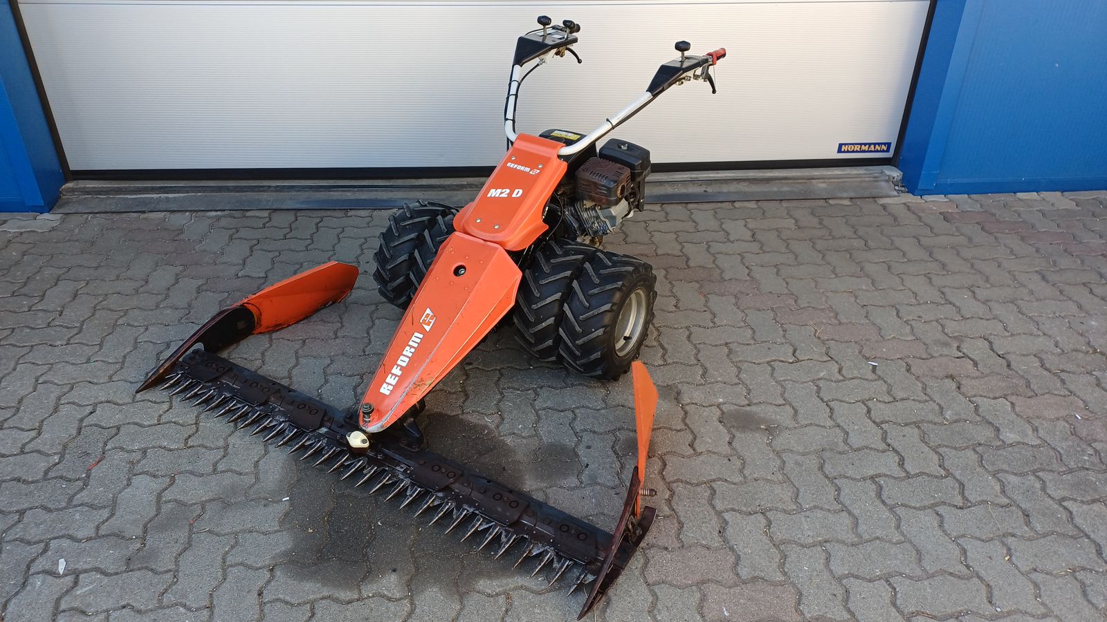 Gebrauchter Reform M2D Motormäher mit 1,6m Mähbreite und 9PS Differentialsperre, Zwillingsreifen, 2 Gang Getriebe, Rückwärts über Griff am Holm, Mähantrieb 2025 erneuert.