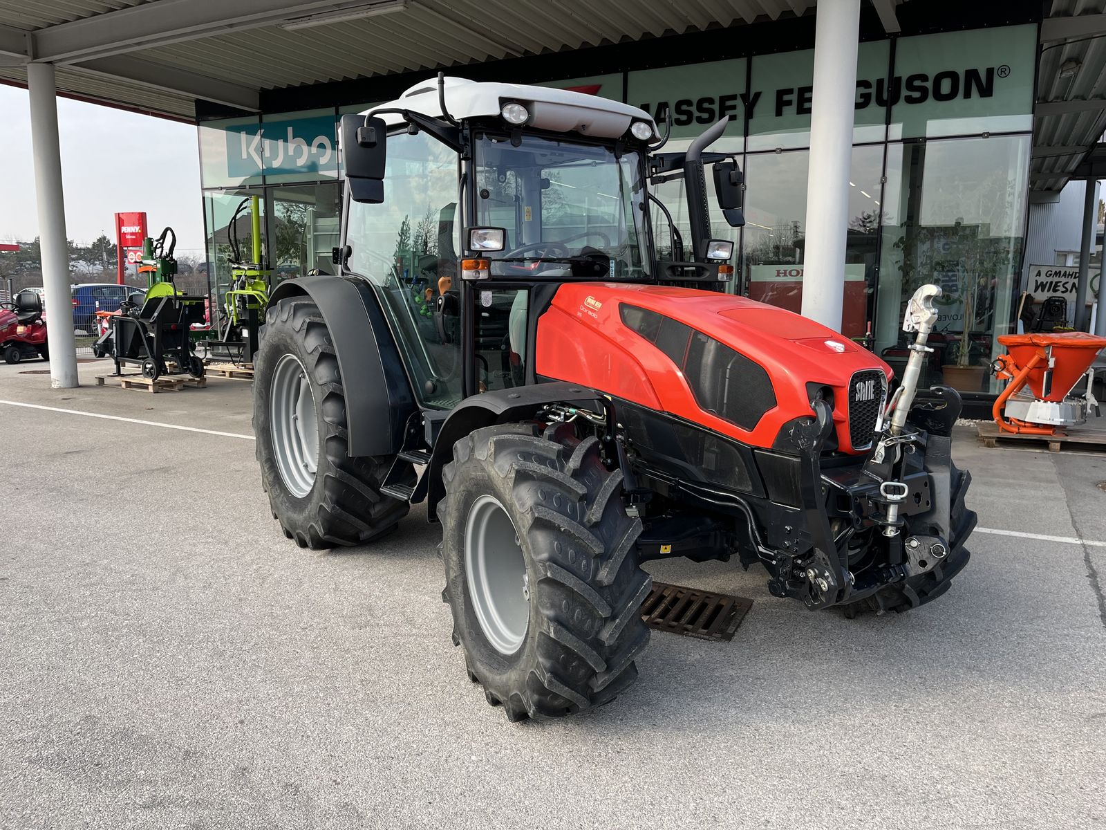 Motor SDF 4-Zylinder-Motor, max. Leistung 70 kW / 95 PS, 3.849 cm³ Hubraum, FARMotion 45 Abgasstufe Tier V, Getriebe Power-Shuttle- Wendegetriebe 45V/45R mit 3-fach Power- shift-Lastschaltung mit Stop&Go System Eco-Speed-Getriebe mit 40 km/h bei reduzierter Motordrehzahl; serienmäßige Ausstattung; Weitere mitglieferte Ausstattungsoptionen: - XL Kraftstofftank, 115 L Diesel, - Luftsitz Grammer MSG93/721 - Klimaanlage mit manueller Regelung - Unterlenker und Oberlenker mit Schnellkuppler KAT 2 - Heckkraftheber mit EHR - Zusatzhubzylinder mit 3.600 kg Hubkraft - automat. Anhängevorrichtung - 3-fach-Zapfwelle 540/540E/1000 U/min - Fronthydraulik Sauter KAT 2 - Wiederholscheinwerfer - Bereifung vorne 380/70R20, hinten 480/70R30