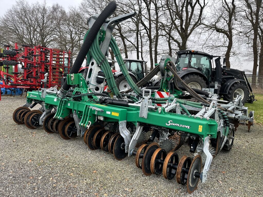 SAMSON Strip-Till 8 (Typ: 68808-10501), Gülleinjektor, Bj. 2022, Arbeitsbreite: 6,00 m, 8-reiher, HD-Parabelscharzinken, Zentralschmierung, zwei versetzte Gülledüsen, erzeugt ein Gülleband in einer Tiefe von 10 bis 30 cm mit einer Streifenbreite von 25 bis 35 cm, die als V-Querschnitt ausgebildet ist, Parralelogramm-Tiefensteuergestänge mit hydraulischer Steinsicherung, hydraulischen Hub- / Senksystemen, vordere Doppelschar-Leitwalze mit Boden-zu-Boden-Andruckrollen, zwei Sternscheiben-Klutenräumer, einer Scheibe, zwei Packerrädern pr. Reihe, Vertikalverteiler mit Kopfschar und Steinfang, Dreipunktaufhängung, 6-Zoll Schlauchkupplungen, Beleuchtung (LED). Änderungen, Irrtümer und Zwischenverkauf vorbehalten. (Intern: 7809)