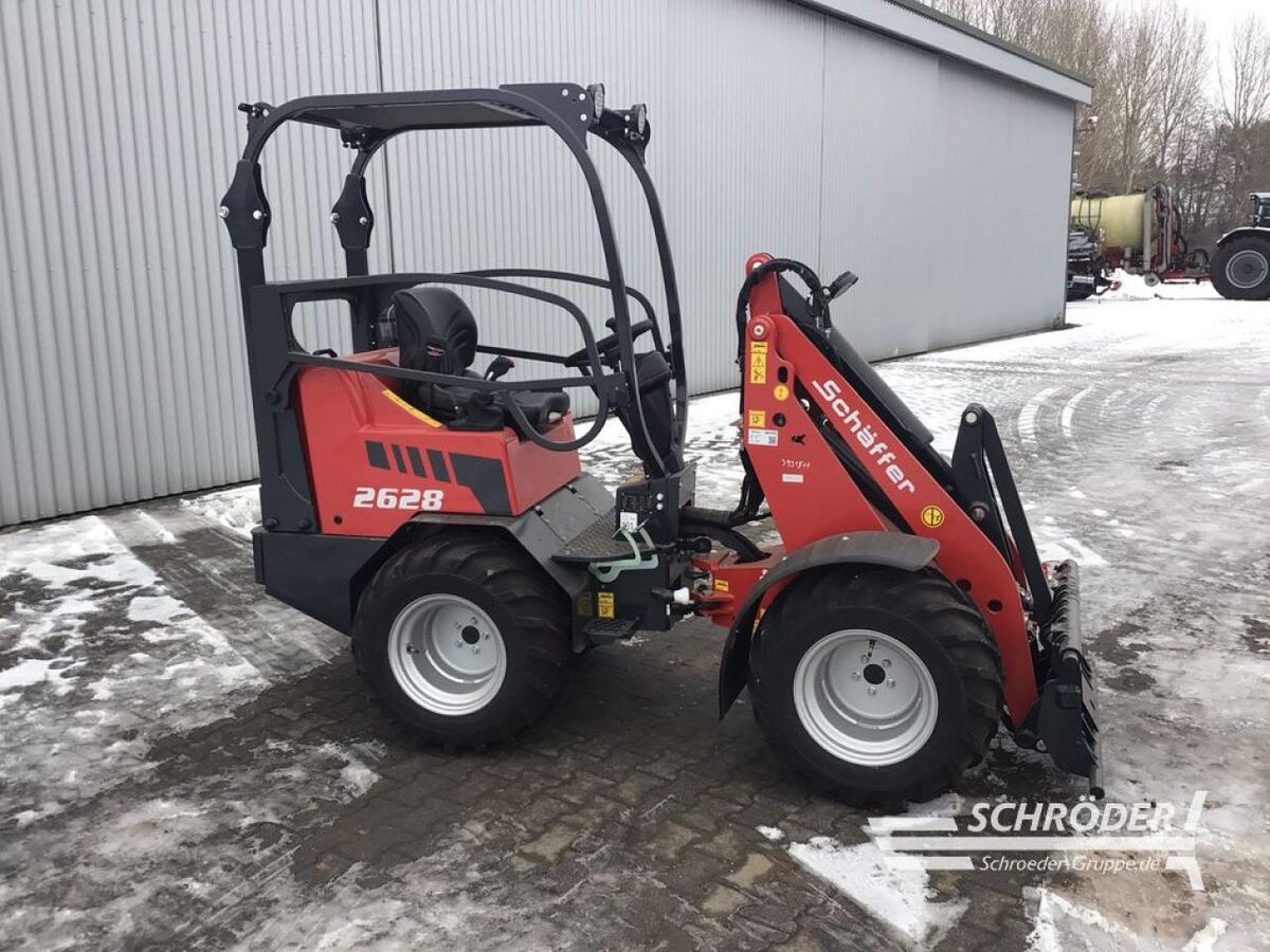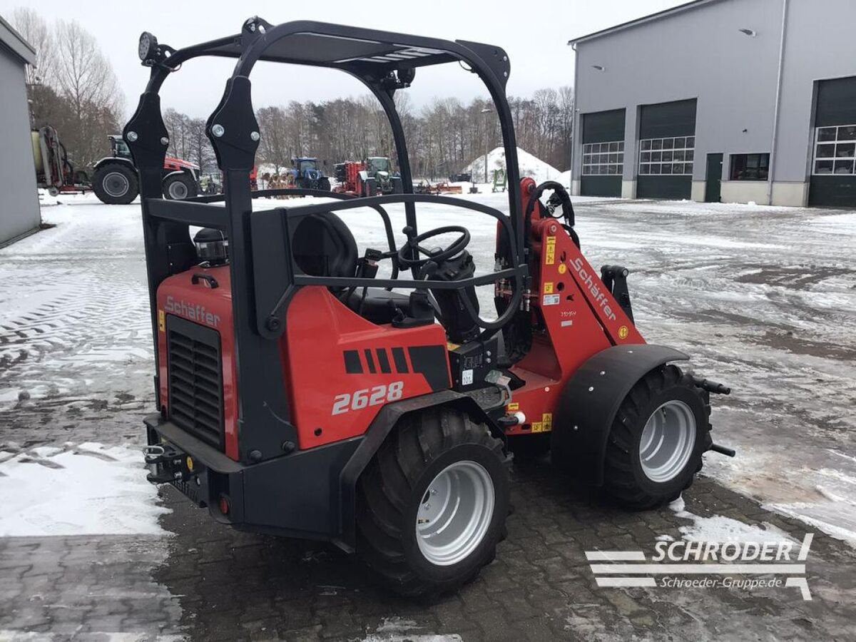 Technische Daten Schäffer 2628:, Leistung: 18,5 kW (25 PS), Betriebsgewicht: 1.850 kg, Geschwindigkeit: 20 km/h, Länge mit Standardschaufel: 3.550 mm, Breite: 1.060 - 1.260 mm, Höhe mit Fahrerschutzdach: 2.200 mm, Wenderadius: 820 mm, Hubhöhe (WZ-Drehpunkt): 2.800 mm, optional: 3.110 mm, Hubkraft: 1.600 kg, Kipplast gerade (Palettengabel): 789 - 941 kg, Kipplast gerade (Schaufel): 1.041 – 1.191 kg, , Serienausstattung Schäffer 2628:, 3-Zylinder-Dieselmotor Kubota D1105, hydrostatischer Allradantrieb mit automotiver Steuerung, Hochdruck-Antrieb HD-plus, Original Schäffer-Achsen, Kombi-Ölkühler,