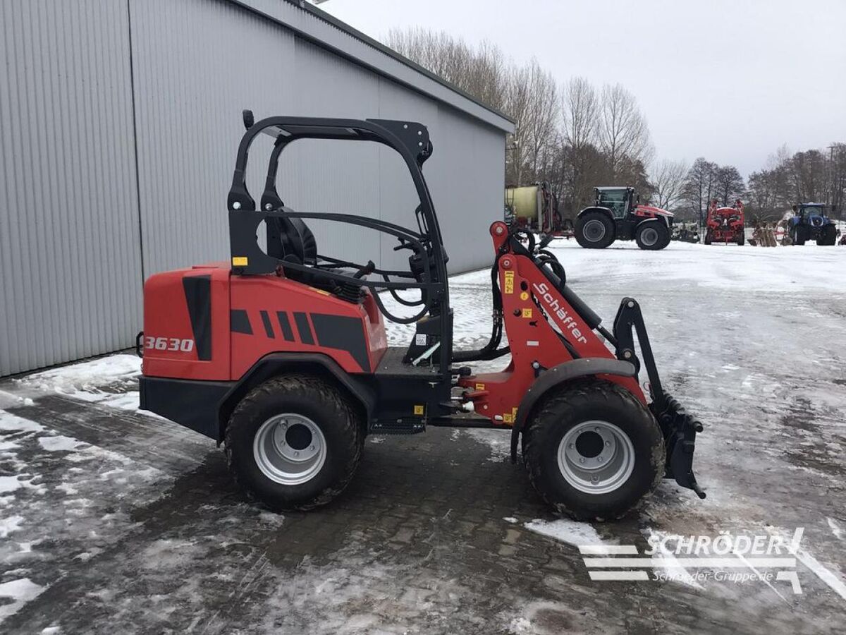 Technische Daten Schäffer 3630:, Leistung: 18,5 kW (25 PS), Betriebsgewicht: 2.300 kg, Geschwindigkeit: 20 km/h, Länge mit Standardschaufel: 4.110 mm, Breite: 1.200 - 1.370 mm, Höhe: 2.230 mm, Wenderadius: 1.020 mm, Hubhöhe (WZ-Drehpunkt): 2.880 mm, optional 3.110 mm, Hubkraft: 1.700 kg, Kipplast gerade (Palettengabel): 1.148 – 1.421 kg, Kipplast gerade (Schaufel): 1.495 – 1.817 kg, , Serienausstattung Schäffer 3630:, 3-Zylinder-Dieselmotor Kubota D1703-M Di, hydrostatischer Allradantrieb mit Gelenkwelle und automotiver Steuerung, Hochdruck-Antrieb HD-plus, HTF (High Traction Force), SPT (Schäffer Power Transmission), hydraulischer Schnellgang