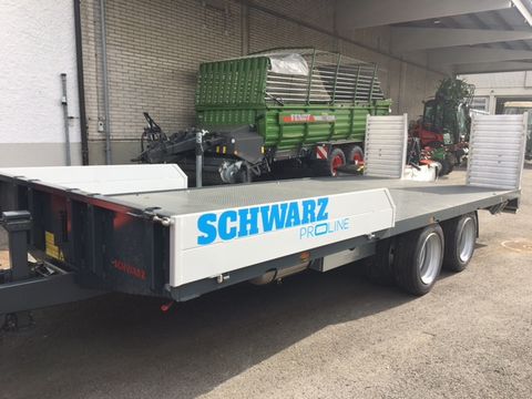 Tieflader mit Rückneigung. Hydr. Auffahrrampen in Alu, Tandem Achse mit Zwillingsbereifung, Brückengrösse 5.70 m x 2.45 m,