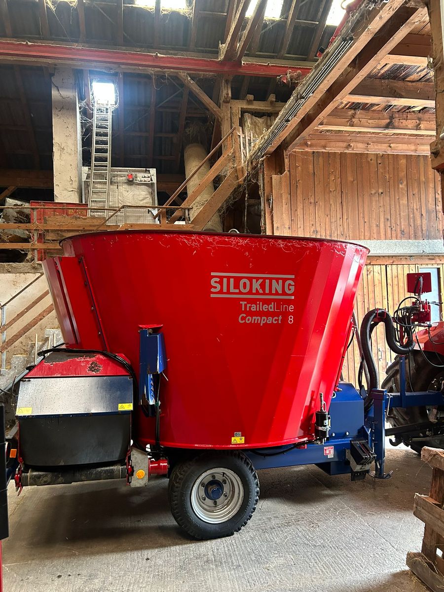 Der Futtermischwagen der Marke Siloking aus dem Baujahr 2013, präsentiert sich als zuverlässiges und effizientes Gerät für die Landwirtschaft. Mit nur einer Betriebsstunde ist dieser Mischwagen praktisch neuwertig und bietet ein beeindruckendes Volumen von 8 m³, ideal für kleinere bis mittlere Fütterungsanforderungen.