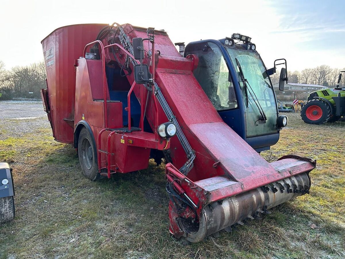 Geschwindigkeit: 20 km/h, Entnahmefräse, Wiegeeinrichtung, Vertikal-Mischer, Austrag beidseitig, selbstfahrend ________ Motorleistung 128 kW Einschnecken-Mischer Behältervolumen 14 m³ ca. 10.900 BH 700 mm breites Beladeband 6-Zylinder Dieselmotor Programmierwaage Top Scale Auslaufschieber hinten links und rechts Mineraleinfülltrichter max. 20 km/h