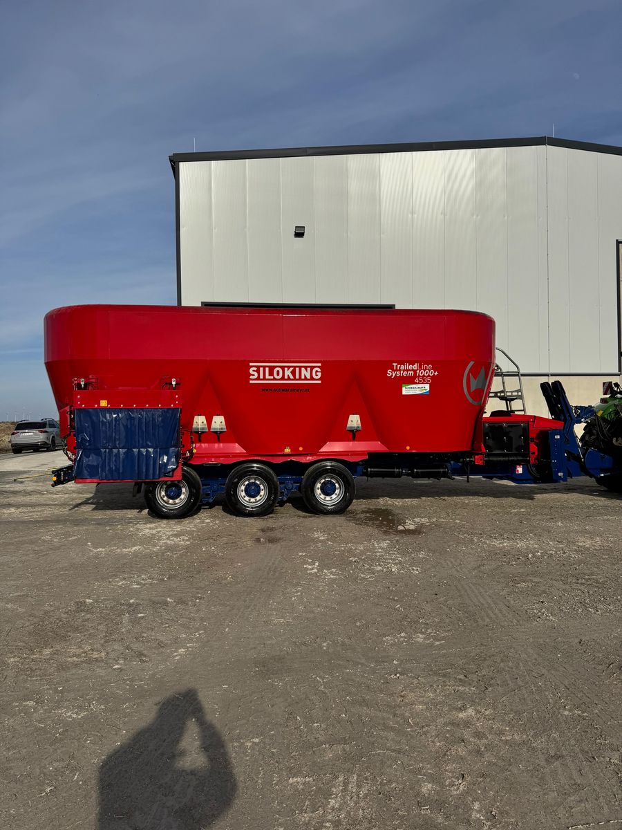 Hohlträgerrahmen inkl. Wiegestäbe gekanteter Behälter FlowPlus-Behälter Silonox Verschleißschutz am Austrag und an den Behäterrinnenkeilen 3 Turbo-Schnecken mit verstellbaren, gehärteten XS-Messeren Deichsel für Untenanhängung Aufstiegsleiter mit Platform, am Rahmen montiert 3 Stk Siloking Planetengetriebe mit 4 Planeten Kotflügel Zusatz Mechanische Gegenschneiden, 2 Stk Tridemaggregat mit 2 Stk Lenkachsen und Bereifung 435/50 R19,5 Funktion Lenkachse sperren nur über Traktorsteuergerät möglich, 1Stk einfach wirkendes Steuergerät erforderlich 1 Stk Zentralschmierung am Rahmen Druckluftbremse Hydraulischer Stützfuß Kugelkopfkupplung 80mm Siloking Vario; Stufenloses Vario-Getriebe mit drei Bereichen zum Einstellen der Schneckendrehzahl bei 1.000 U/min, inkl. Ölkühlung. Weitwinkelgelenkwelle Traktorseitig 1/3/8" Z6 Siloking Data E Funk-Wiegesystem mit Feeding Management Software inkl. Funk-Bedienung der hydraul. Funktion, inkl 1 Terminal Zusätzlicher Heavy-Duty- Austragschieberseitlich hinten rechts 1 Stk Austragsrutsche, hydraulisch klappbar, zum Klappen von unten nach oben. Unterfahrschutz hinten mit Beleuchtung