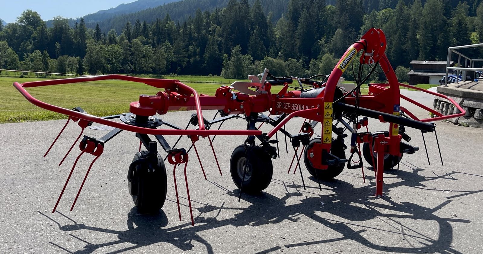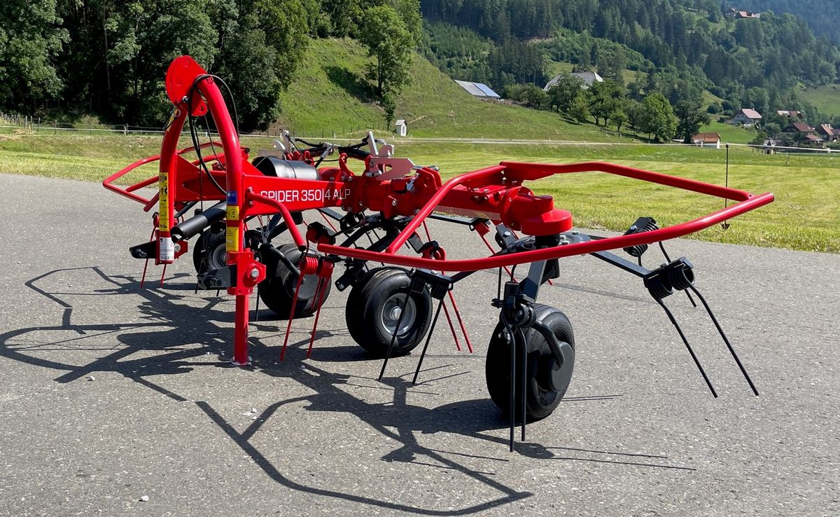 Sofort Verfügbar! SIP Spider 350|4 ALP Kreiselheuer. Die Kreiselzettwender SPIDER 350I4 ALP sind für die Arbeit mit Traktoren mit geringerer Leistung in steilem Gelände und an Hängen konzipiert. Ausstattung & Technische Daten: - 3-Punkt-Aufhängung Kat.1&2 - 2x Kreuzgelenk - Massive Zinkenhalter aus Flachstahl - Gelenkwelle mit Überlastsicherung - Doppelzinken Federzinken aus Stahl SUPER C mit unterschiedlicher Schenkellänge - Kreiseldurchmesser (m): 1,30 - Kreiseldrehzahl (U/min): 205 - Zapfwellendrehzahl (U/min): 450 - 540 - Winkeleinstellung: 14°-18° - Sicherheitskupplung (Nm): 460 - Maschinenbreite (m): 3.90 - Transportbreite (m): 2.20 - Transporthöhe (m): 2.00 - Transportlänge (m): 1.45 - Arbeitsbreite (m): 3.40 - Gewicht (kg): 270 - Leistung (ha/h): 3.50 - KW/PS Bedarf: 11/15 - Federzinken pro Kreisel: 5 - Kreiselanzahl: 4 - Hydraulische Aushebung Die Zettwender sind robust und ihre leichte Bauweise sorgt für eine außergewöhnliche Manövrierfähigkeit. Sie sind für kleine und mittlere landwirtschaftliche Betriebe sowie für das Streuen oder Wenden von Futter in den Berggebieten bestimmt. Besichtigung nach telefonische Absprache jederzeit möglich. Zustellung in ganz Österreich möglich.