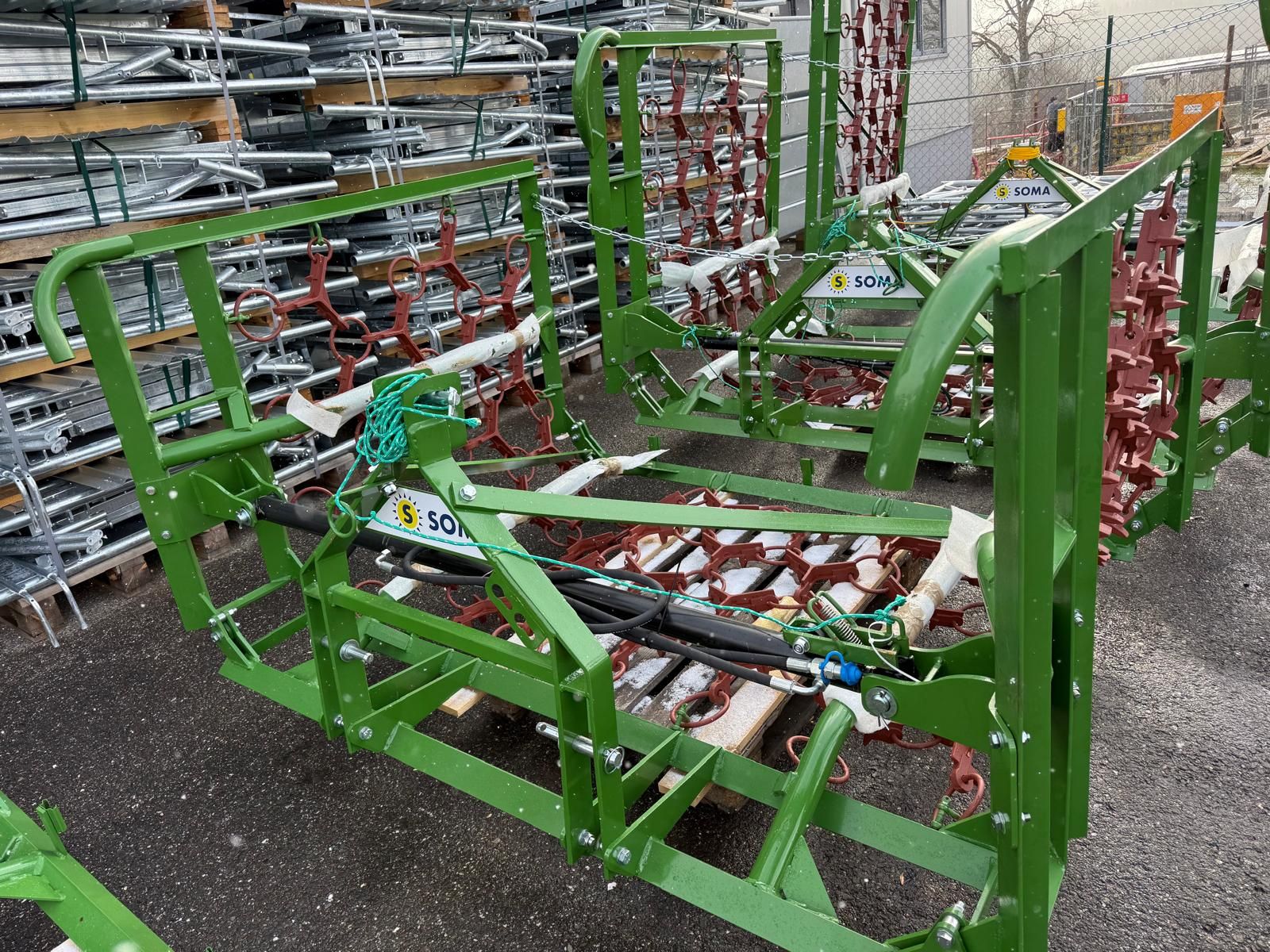 SOMA Wiesenegge -4m Arbeitsbreite -4 Reihen Gusssterne -mechanische Klappung -Eggenfeld wendbar, dadurch normale und aggressive Bearbeitungsintensität Großes Lager an neuen Wieseneggen in Fischbach. Sofortige Abholung oder Lieferung möglich Die Wiesenegge kann gerne bei uns besichtigt werden, hierfür bitte per Mail oder Telefon einen Termin vereinbaren, sodass wir uns genug Zeit für Sie nehmen können. Ihr SOMA-Verkaufsteam