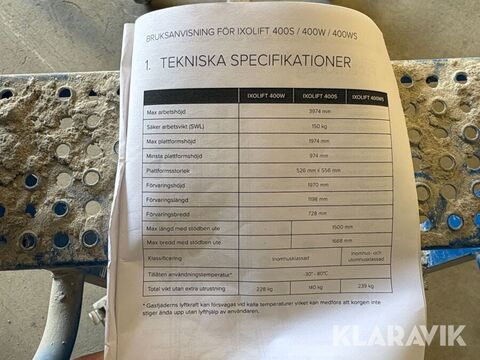 Arbetshöjd: Max 3974mm