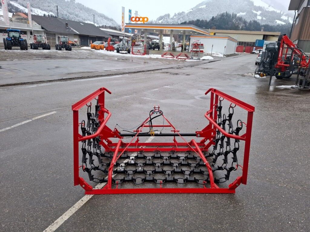 Zum Verkauf steht eine neue Wiesenegge mit 4.0 m Arbeitsbreite, mechanisch klappbar für sicheren und platzsparenden Transport.Die Egge eignet sich ideal zur Grünlandpflege, zum Einebnen von Maulwurfshaufen, Verteilen von Ernterückständen sowie zum Ausstriegeln von abgestorbenem Pflanzenmaterial. Durch die robuste Bauweise ist sie sowohl für kleinere Betriebe als auch für Lohnunternehmer geeignet.Technische DatenArbeitsbreite: 4.0 mAusführung: hydraulisch klappbarAnbau: Dreipunkt Kat. I / IITransportbreite: reduziert durch KlappmechanismusZustand: NeuVorteile✔ Einfache, robuste Konstruktion✔ Schnelles Umstellen von Arbeits- auf Transportstellung✔ Gleichmässige Bearbeitung der Grasnarbe✔ Förderung der Bestockung und Narbenbelüftung✔ Geringer WartungsaufwandEinsatzbereicheFrühjahrs- und Herbstpflege von DauergrünlandNachsaatvorbereitungStriegeln und EinebnenVerteilung organischer RückständeBesichtigung nach Vereinbarung möglich.Transport oder Lieferung nach Absprache., Gewicht:400