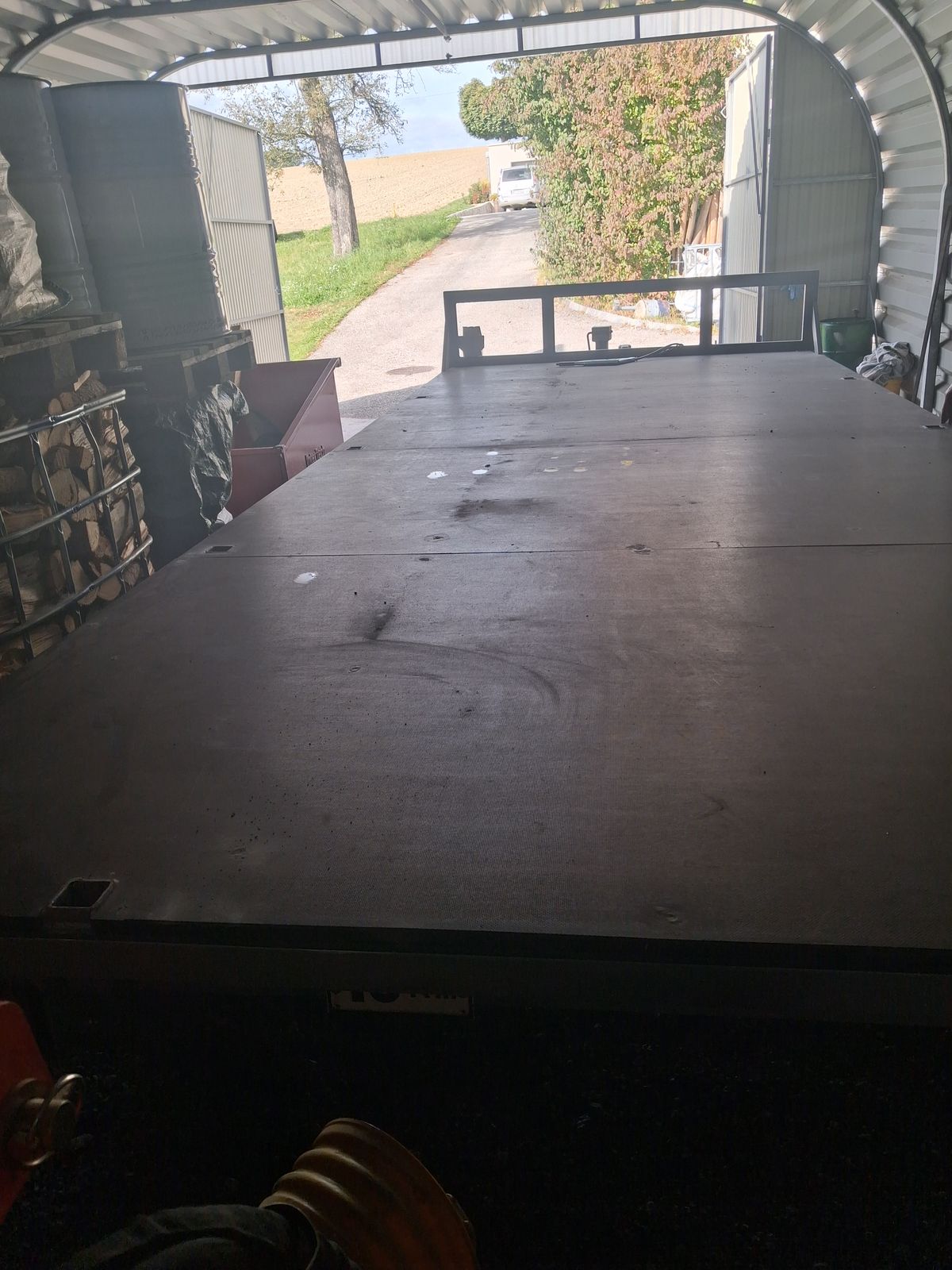 Prompt verfügbarer Plateauanhänger Tandemachse, nicht gefedert, Eigenbau, Rutschfester Boden, Beleuchtung, für Rundballen bestens geeignet