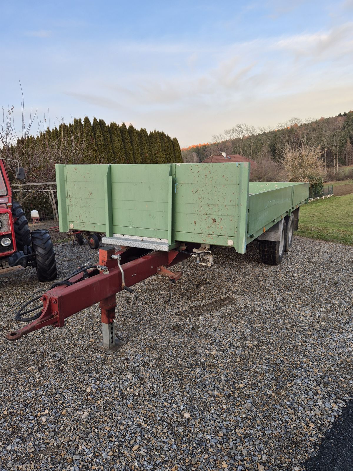 Zum Verkauf steht ein sehr schöner Tandem Anhänger für Ballen,Großkisten, Bagger,etc.! Druckluftbremse! 6,20x2,30m! Super Zustand!