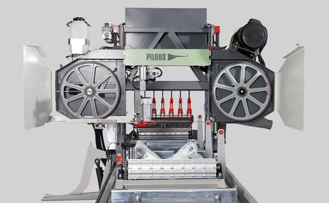 Extra starke, solide, langlebige Blockbandsäge für einen Stammdurchmesser bis 1000 mm. Das Sägewerk ist mit Verlängerungssektionen beliebig erweiterbar. Softstarter ist inkludiert Automatischer Vorschub mit stufenloser Geschwindigkeit. Elektrische Höhenverstellung vom Bedienerpult aus zu regeln. Touchscreen LCD 8.4 Zoll für die Höheneinstellung Mit teleskopischen Hebelstammdreher, Stammheber, Stammheber mit Antrieb für horizontalen Stammvorschub. 5 schwenkbare Hydraulische Winkelanschläge. 2 Stück Stammspannwerkzeug. hydraulische Sägebandspannung. Elekrtisch verstellbare Sägebandführung und automatischer Kühlmittelpumpe. Beidseitig aufgehängtes Sägeaggregat für mehr Stabilität und bessere Präzision. Entwickelt, gebaut und qualitätsgeprüft in Europa! CE geprüft.Technische Daten:Max. Stammdurchmesser 1000 mmMax. Brettbreite (Plattenbreite) 920 mmMax. Sägeblatthub 900 mmMin. Schnitthöhe 30 mmMax. Rahmendurchgang 365 mmSchnittlänge der Grundsektion 7,5 mLänge der Verlängerungssektion 3 mSägeblattantrieb Abgabe bei 100% ED 22 kWVorschubmotor bei 100% ED 3 kWHubmotor 0,55 kWMotor vom Hydraulikaggregat 5,5 kWSägeblattdimension 5960 x 60 x 0,9-1,3 mmGewicht der Grundversion 2800 kgMögliche Sonderausstattung:Verlängerungssektion jeweils 3mVorschneideinrichtungDoppelarmstammheberTeleskop StammdreherKettenstammdreherStammspannerMaterialrücktransporteinrichtungMaterialrutsche4 telesk. Winkelanschläge incl. 2 SpezialspannerAbdeckplaneSchärfmaschineSchränkgerät