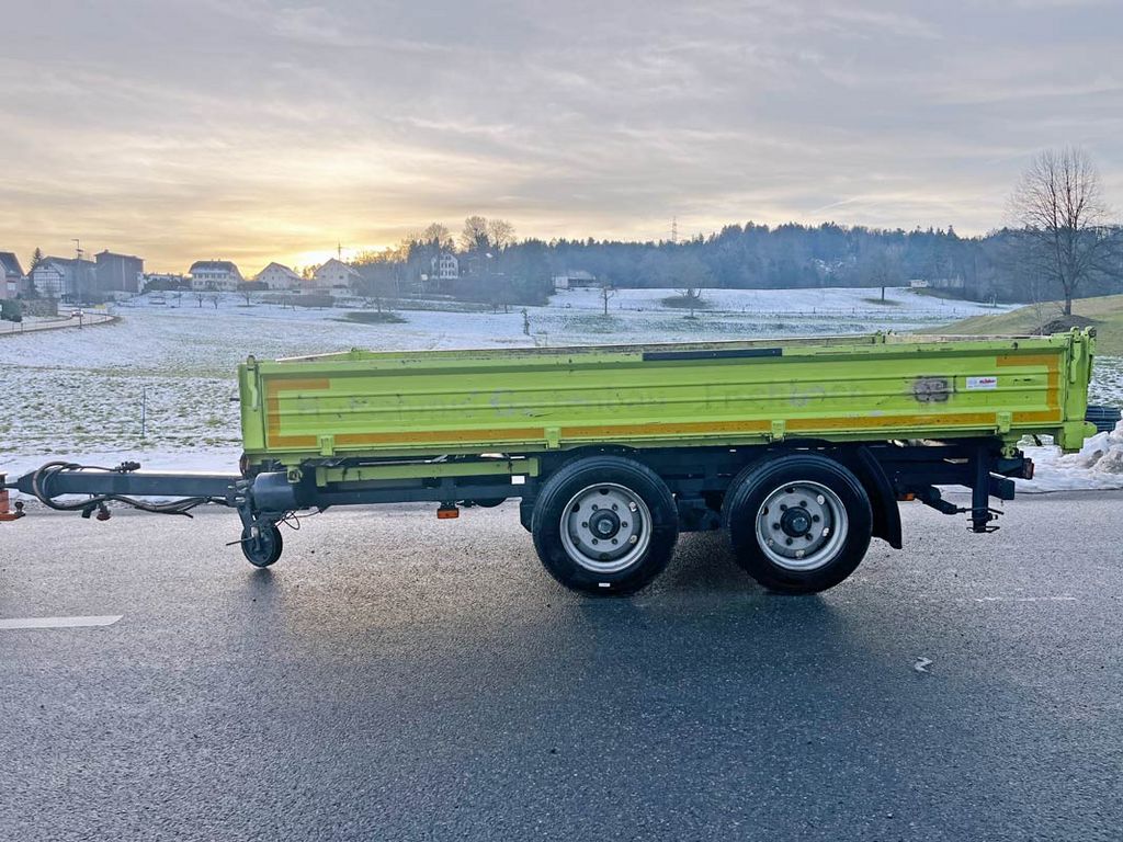 AMS 21677 - Ges.Gewicht: 6000 kg - Nutzlast : 3870 kg - Brückenmasse: 4000 x 2300 mm, Oesen 18 in Brücke - Brückenhöhe : 900 mm , - Bordwand 400 mm - Länge Total : 6000 mm - Bereifung : 215/75 R 17,5 70% Tandem gefedert - Bremsen : 80 km/h oder 30 km/h 2 Leiter Luftbremse - Anhängung : Oese 40mm in Höhe verstellbar - Farbe : grün - Jahr : 2012 - Zubehör : Stützfuss mechanisch, reserve Rad, Heckstützen - Zubehör : Rampenschacht - Zustand : mechanisch io - Mängel : ABS Dose defekt, Kippen nur mit Handpumpe - Letzte MFK : 10.12.2024 - Neupreis : Fr. 23 000.- - Garantie : ab Platz
