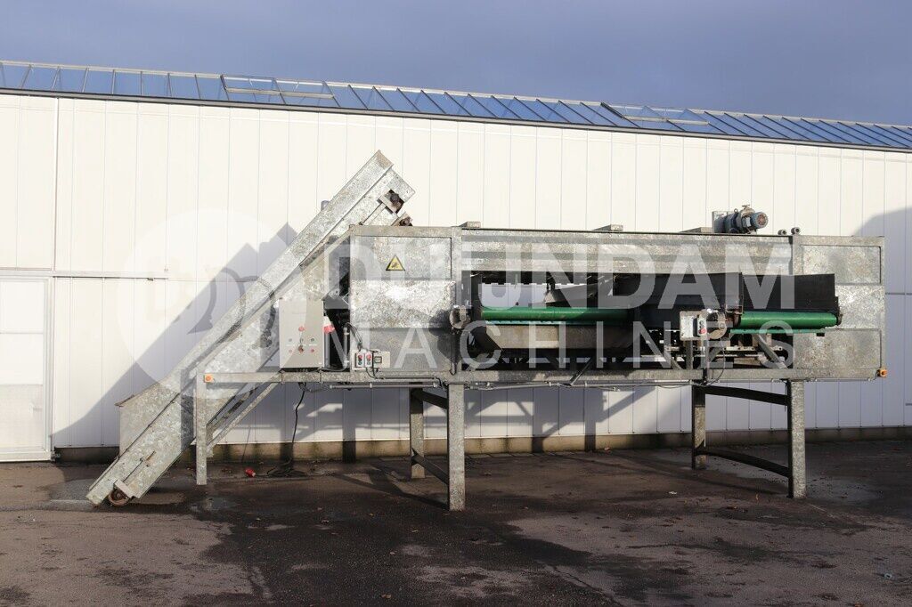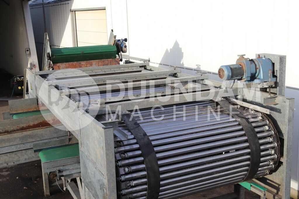 Der Bruynooghe Rollensortiermaschine ist mit seitlich platzierten Sortierwalzen aus Edelstahl ausgestattet. Der Abstand zwischen diesen Walzen ändert sich schrittweise über die verschiedenen Sortierstufen. Förderbänder werden unter die Maschine gelegt, eines für jede Sortiergröße.Radiale Rollensortiermaschinen haben Rollen aus rostfreiem Stahl, die quer zur Maschine an Ketten angeordnet sind. Der Rollenabstand kann schrittweise für verschiedene Sortiervorgänge verändert werden. Dies erfolgt normalerweise durch Tiefersetzen der untersten Rolle aus rostfreiem Stahl gegenüber der obersten Rolle. Die Maße können normalerweise einfach mechanisch eingestellt werden. Das Sortiergut mit entsprechendem Maß fällt beim Fahren über den Sortierbereich auf das Abführband unter dem Rollensortierer. Es sorgt dafür, dass das sortierte Produkt abgeführt wird.