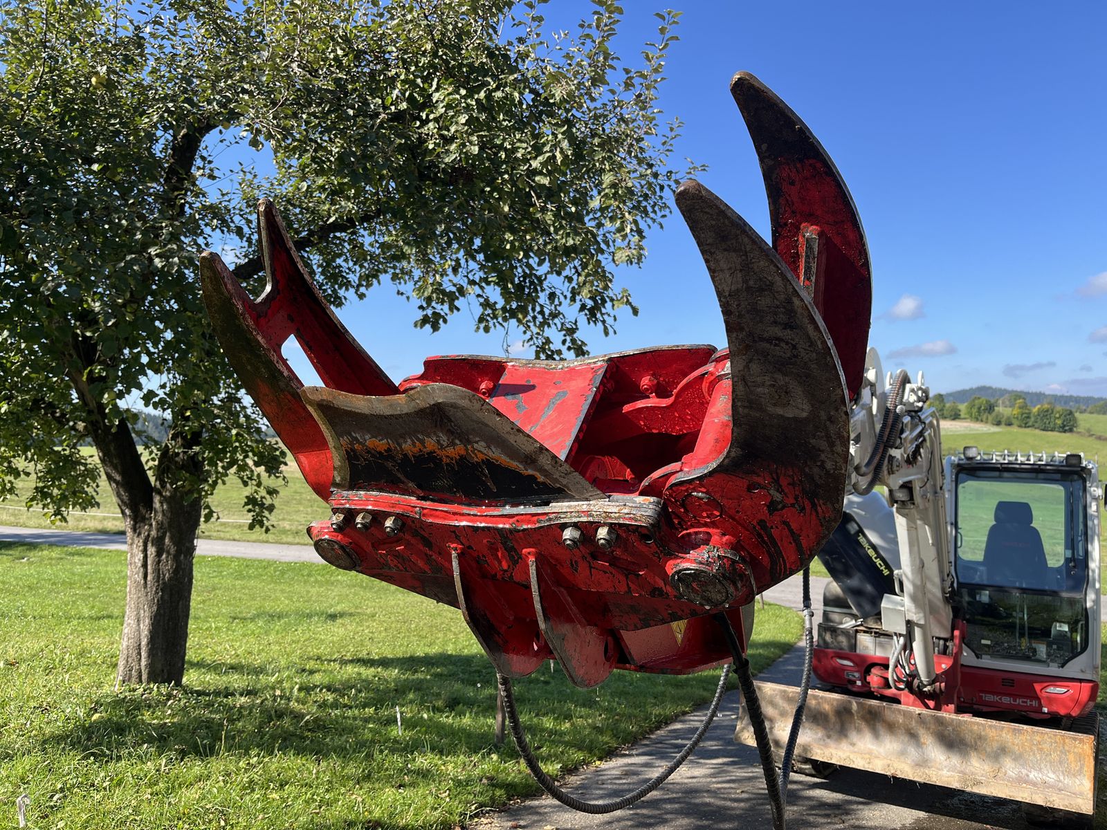 Der Holzfällgreifer ist geeignet für Bagger von 5 bis 11 Tonnen.