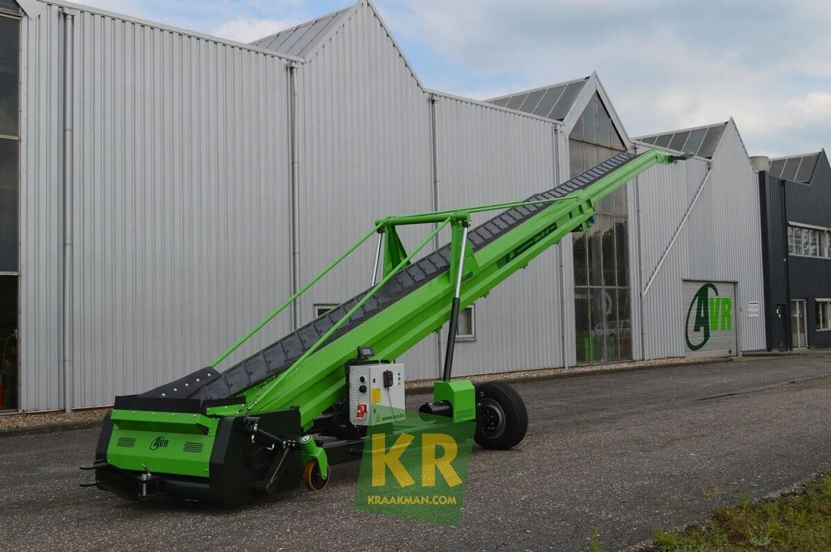 == Weitere Details (NL) == Preis: Preis auf Anfrage Menge: 1 Anhängerkupplung mit doppelter Lippe, leicht demontierbar PU-Schwenkstützräder für den Transport Schwenkbar auf den Reifen: (285/70-R19.5) * Beide hydraulisch angetrieben mit Entkopplung für Freilauf beim Transport * Von Transport- zu Schwenkposition der Räder mittels Hydraulikzylinder Stempel (Ø 280 mm) Gummiertrichter Gummiertransportband, gestützt durch rollenförmige Trichter Chevron-Profil (15 mm) mit guter Mitnahmewirkung für Kartoffeln „Mitlaufende” Seitenwände 80‐17 / 80‐19: Antrieb mittels 2 VanderGraaf-Trommelmotoren (2 x 4 kW) 80‐15: Antrieb mittels 1 VanderGraaf-Trommelmotor (1 x 5,5 kW) Trommelmotoren mit leichter Wölbung und Trommelverkleidung Automatisches Lenksystem Band Abstreifer an Umlenkrolle und Einzugsrolle Trommelmotor oben und unten V-Abstreifer im Band Verstellbarer (0-20°) Knick oben (L 1,50 m) Hydraulik Pumpengruppe für Antrieb Räder (proportional) Schwenkposition Band auf/ab Elektrisch Erforderliche Stromversorgung 3x400V + PE 50/60HZ 32A Elektromotoren für Antrieb Hydro-Einheit (2,2 kW) Band (Trommelmotoren) ein-/ausfahren Frequenzumrichter für Bandantrieb Sensoren Encoder am Drehpunkt -> Teach-Punkte festlegen Induktiver Sensor: Endlauf beim Ein- und Ausfahren messen Drucksensoren: Versorgungsdruck & Radmotoren Bedienung Schaltschrank mit 32A-Eingangsstecker + Phasenwechsler * Funktionen: Start-Stopp & Reset (mit Leuchtanzeige) Not-Aus-Summer * LC: 13-poliger Stecker zum Anschluss an andere Maschinen 5" Touch-Display und kabelgebundenes Tastenfeld (10 m) 5"-Display für alle Bedienungsinformationen und Fehlercodes Tastatur: 15 Funktionen + Not-Aus * Band ein/aus Bandgeschwindigkeit Band auf/ab Band ein/aus manuell/auto Schwenkposition Schwenken links/rechts Fahren linkes Rad/rechtes Rad – vorne/hinten Teach-Positionen und eine Auswahltaste Automatische Funktion Standardmaschine Begrenzung links/rechts durch Einstellen von Teach-Punkten Warten und Einschieben am Teach-Punkt Sicherheit durch Überdruck auf Radmotoren 17 m Länge 0,80 Bandbreite Kupplungsteil für Doppelband Gummiringe auf allen Rollen Zuführband (1250 mm). Mit Band 15 % +15 % Geschwindigkeit gegenüber Hauptband gekoppelt. Option doppelte PU-Räder inkl. 2 LED-Arbeitsscheinwerfer auf festem Teil des Elevators Funkfernbedienung mit Not-Aus (Tiger) AUTO II (Wand- und Produktdetektion + Höhenmessung) Stärken Benutzer- und wartungsfreundlich Schonende Behandlung der Ernte durch minimale Fallhöhe und gleichmäßige Zuführung der Kartoffeln Halbautomatisches Befüllen dank Sensoren