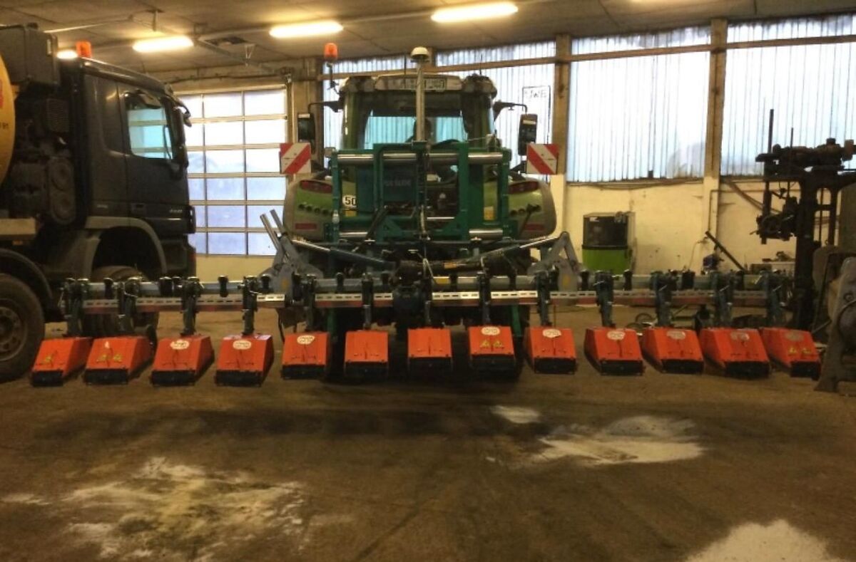 Reihenanzahl: 12, Hydraulische Klappung ________ Reihenfräse Frästiefe: 10 cm Fräsmesser: 192 Gelenkwelle 12 x 50 cm auch verfügbar